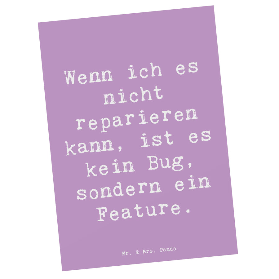 Du suchst nach dem perfekten Geschenk für einen Softwareentwickler oder IT-Entwickler? Dann haben wir genau das Richtige für dich! Unsere einzigartige Postkarte von Mr. & Mrs. Panda mit dem liebevollen Motiv "Softwareentwickler" und dem witzigen Spruch "Wenn ich es nicht reparieren kann, ist es kein Bug, sondern ein Feature" wird sicher für Begeisterung sorgen! Diese Karte ist nicht nur eine einfache Grußkarte; sie verkörpert die Leidenschaft und den Humor derjenigen, die in der digitalen Welt arbeiten.