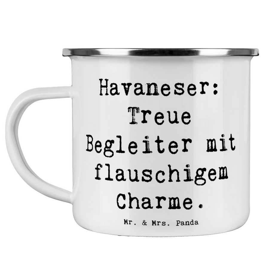 Die Camping Emaille Tasse mit dem süßen Havaneser-Motiv von Mr. & Mrs. Panda ist das perfekte Geschenk für Hundeliebhaber und Outdoor-Fans. Du liebst es, die Natur zu erkunden, während du deinen treuen Begleiter an deiner Seite hast? Dann ist diese Tasse genau das Richtige für dich!