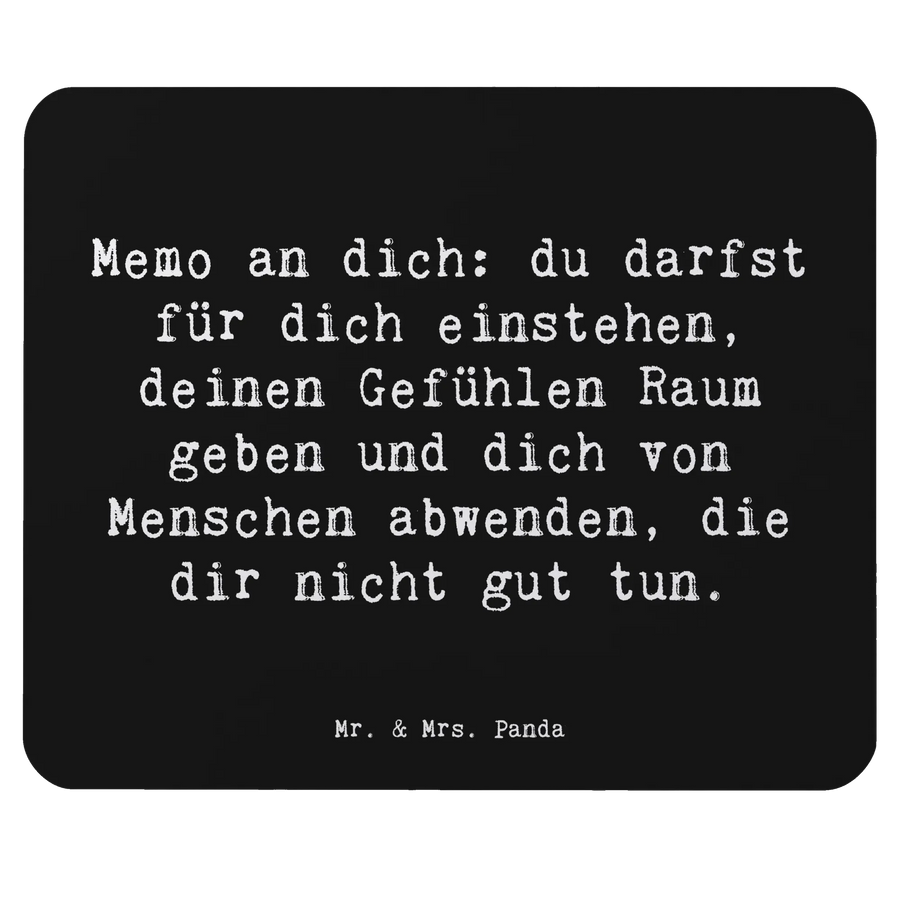 Dieses Mauspad ist nicht nur ein praktisches PC Zubehör für Dein Arbeitszimmer, sondern auch ein liebevolles Accessoire, das jeden Arbeitsplatz aufpeppen kann. Mit dem inspirierenden Spruch "Memo an dich: du darfst für dich einstehen, deinen Gefühlen Raum geben und dich von Menschen abwenden, die dir nicht gut tun" bringt es Motivation und positive Gedanken in Deinen Alltag.
