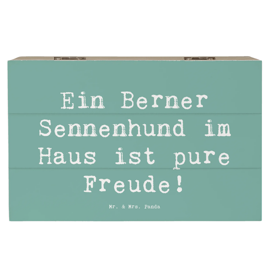 Entdecke die zauberhafte Holzkiste mit dem Motto "Ein Berner Sennenhund im Haus ist pure Freude!" von Mr. & Mrs. Panda. Diese exquisite Kiste besteht aus hochwertiger Premium Hartfaser, die nicht nur robust, sondern auch wasserabweisend ist.