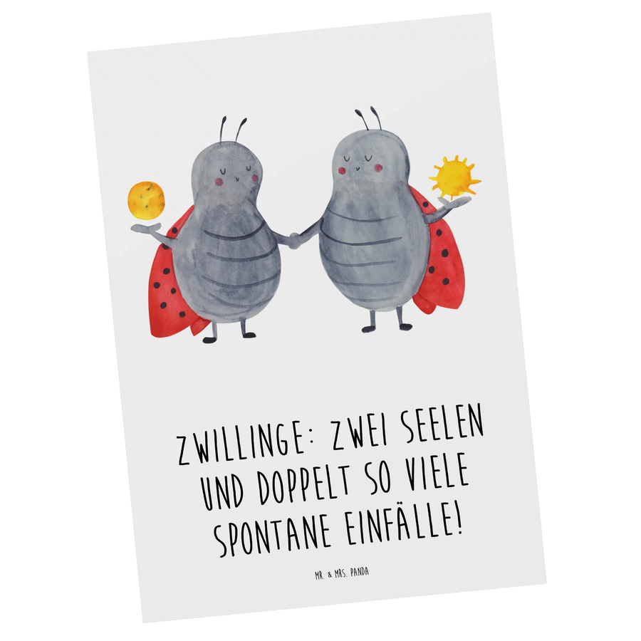 Entdecke die zauberhafte Postkarte für Zwillinge aus der einzigartigen Sternzeichen-Kollektion von Mr. & Mrs. Panda!