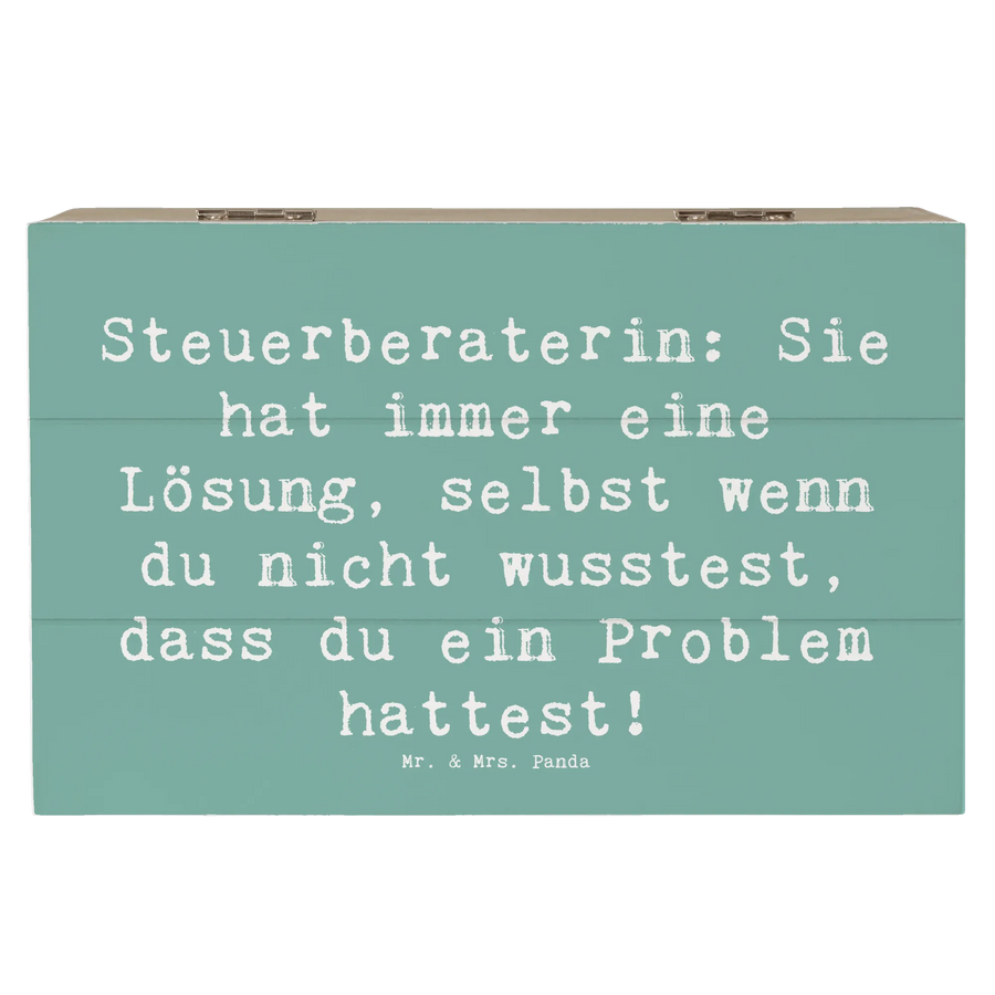 Mr. & Mrs. Panda Holzkiste „Steuerberaterin“ – ein kleines Geschenk mit großer Wirkung. Diese dekorative Aufbewahrungsbox Holz aus der Berufe-Kollektion trägt den liebevollen Spruch „Steuerberaterin: Sie hat immer eine Lösung, selbst wenn du nicht wusstest, dass du ein Problem hattest!“ und zaubert damit ein Lächeln auf jedes Gesicht.