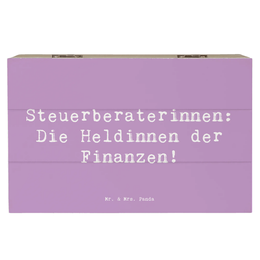 Die wunderschöne Holzkiste von Mr. & Mrs. Panda ist das perfekte Geschenk für jede Steuerberaterin! Mit ihrem liebevoll handgezeichneten Design und dem inspirierenden Spruch "Steuerberaterinnen: Die Heldinnen der Finanzen!" bringt diese Kiste Freude und Wertschätzung in den Berufsalltag.