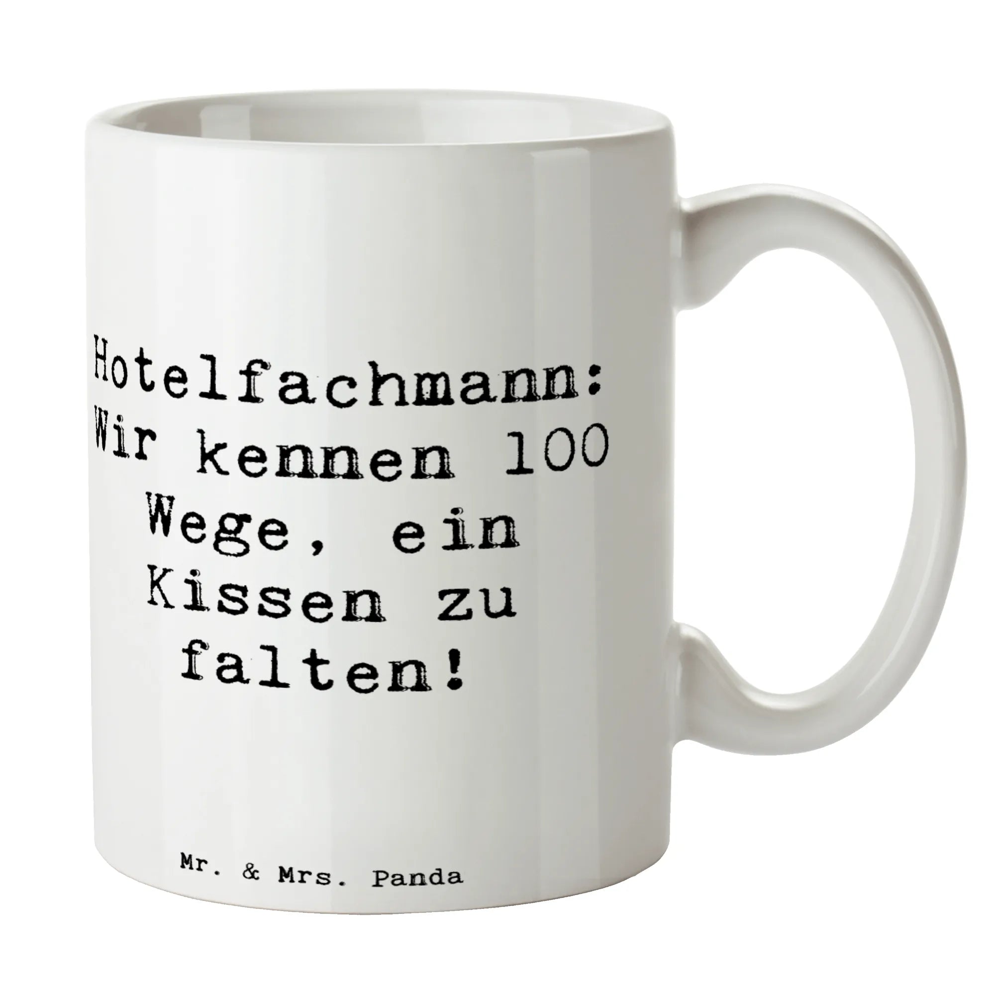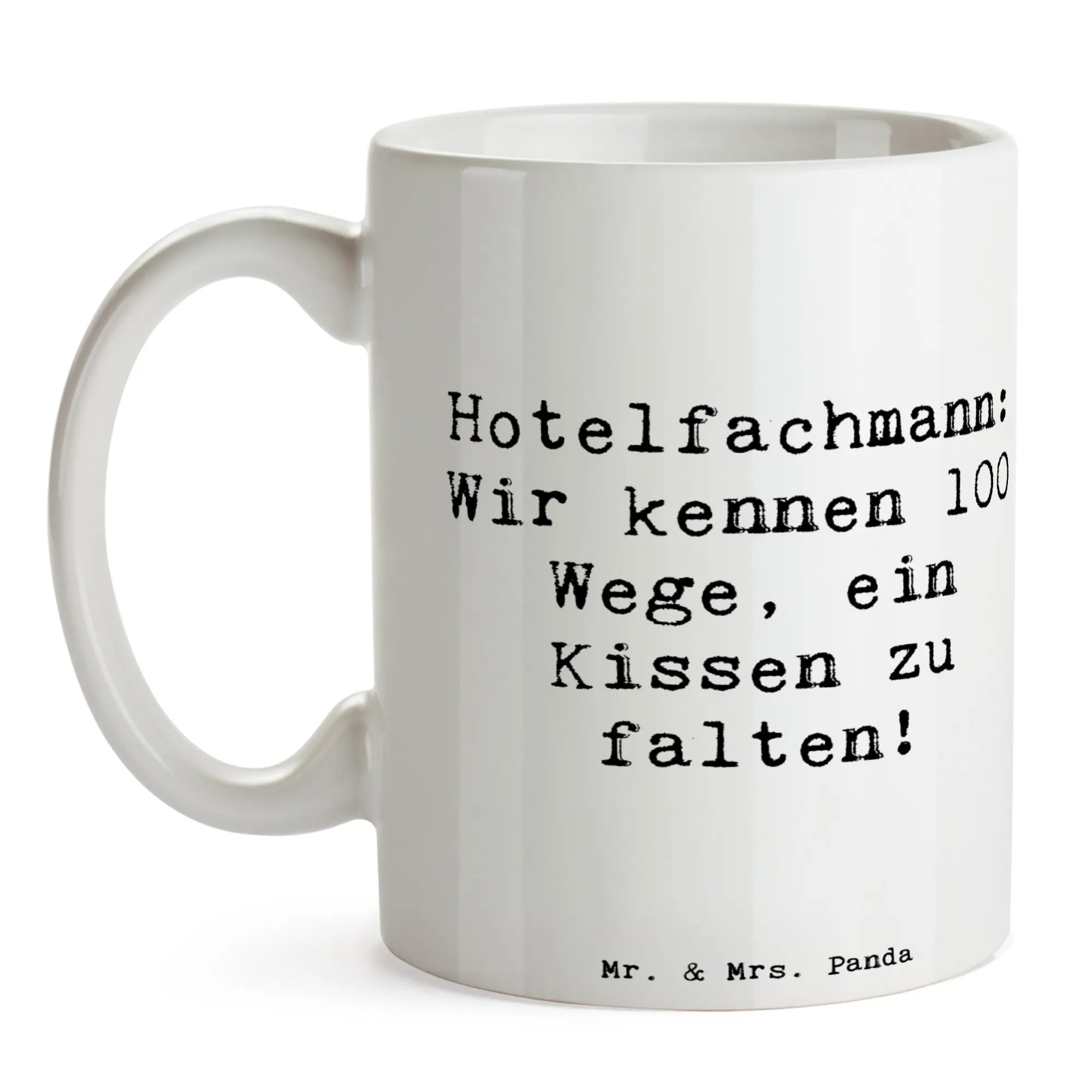 Tasse Spruch Hotelfachmann: Wir kennen 100 Wege, ein Kissen zu falten! - Weiß