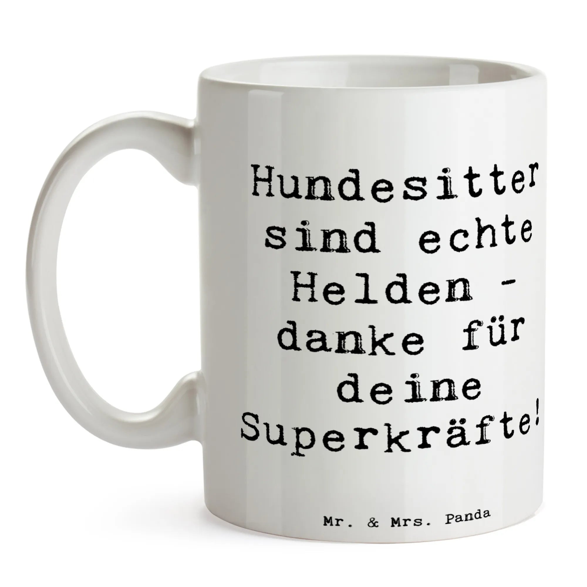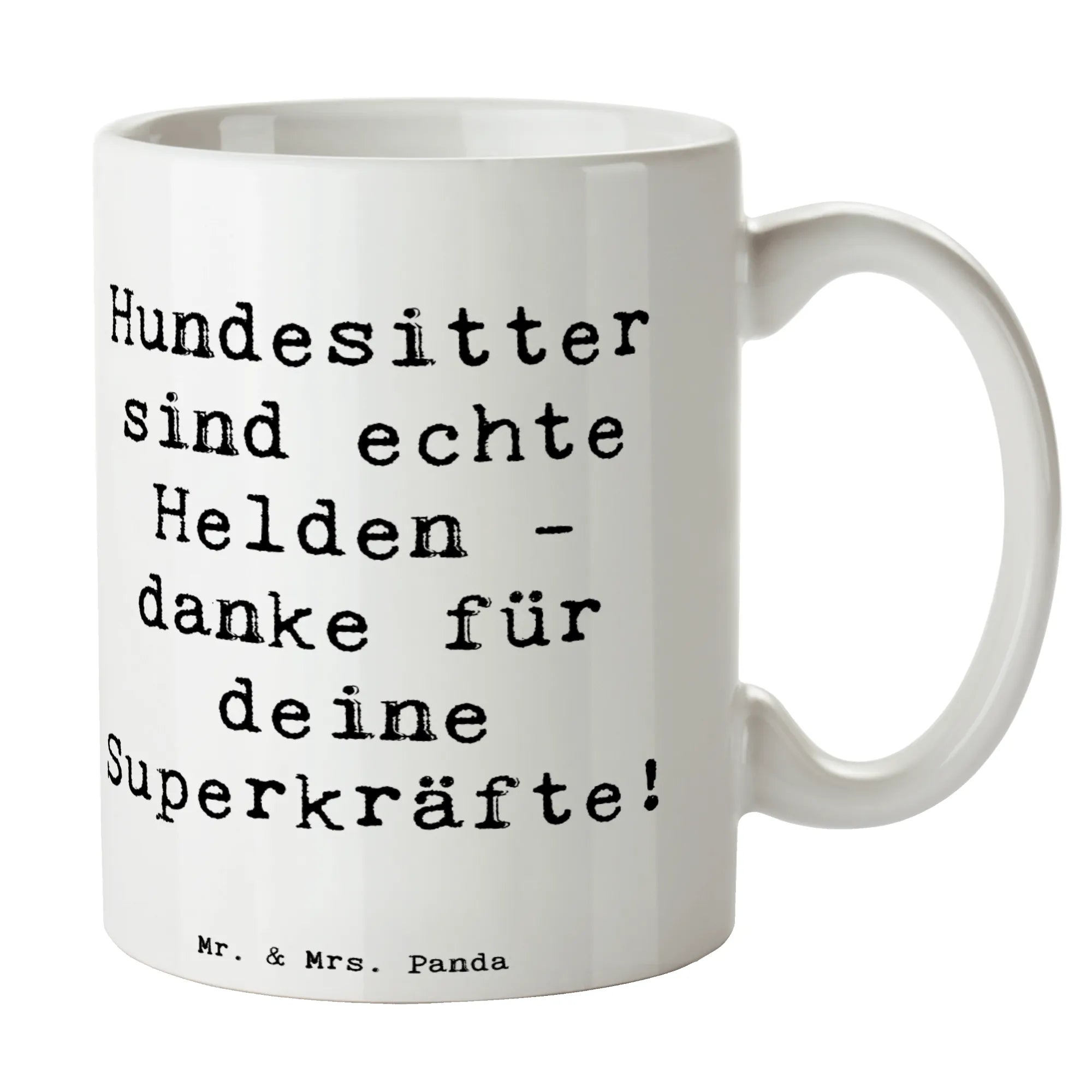 Die Mr. & Mrs. Panda Tasse mit dem liebevollen Motiv "Hundesitter sind echte Helden - danke für deine Superkräfte!" ist das perfekte Geschenk für alle, die ihren treuen Begleitern besondere Aufmerksamkeit schenken möchten. Ob du selbst Hunde besitzest oder einen lieben Menschen mit einem vierbeinigen Freund beschenkst, diese stilvolle Keramiktasse wird jeden Hundeliebe-Herz erfreuen!