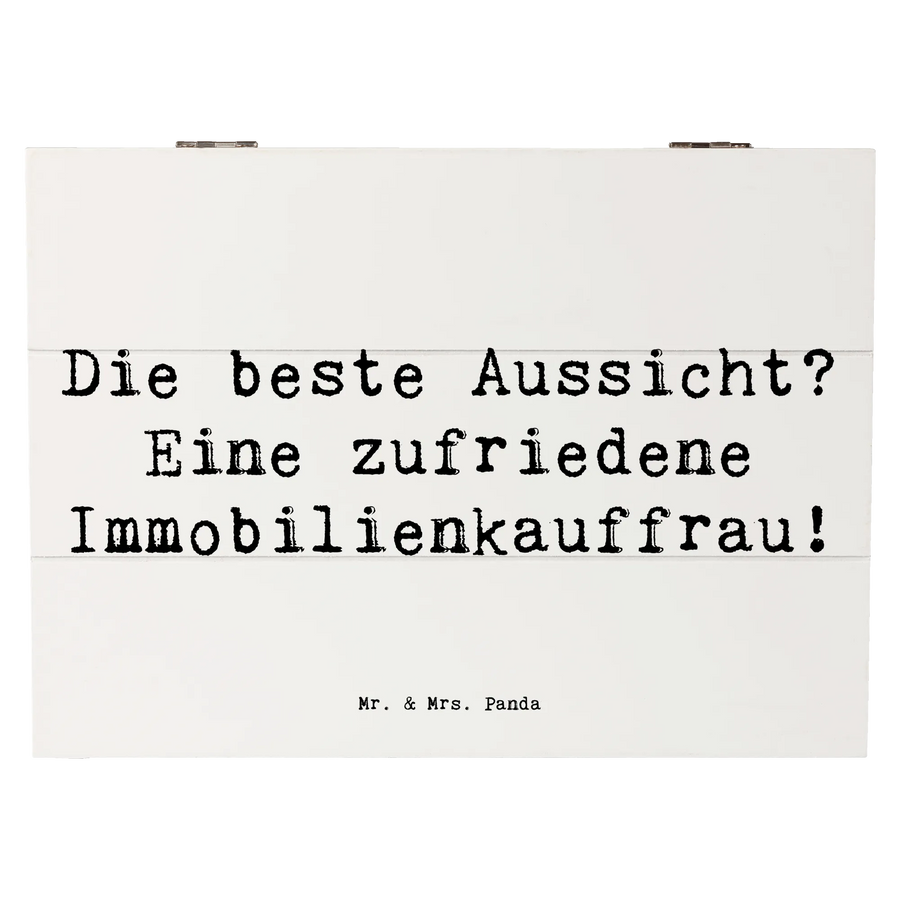 Die wunderschöne Holzkiste von Mr. & Mrs. Panda ist das perfekte Geschenk für Immobilienkauffrauen und alle, die diese kreative Profession schätzen. Mit dem liebevoll gestalteten Motiv "Die beste Aussicht? Eine zufriedene Immobilienkauffrau!" ist diese Holzkiste mehr als nur ein Aufbewahrungsort – sie ist ein Statement deiner Leidenschaft und Professionalität im Immobiliengeschäft.