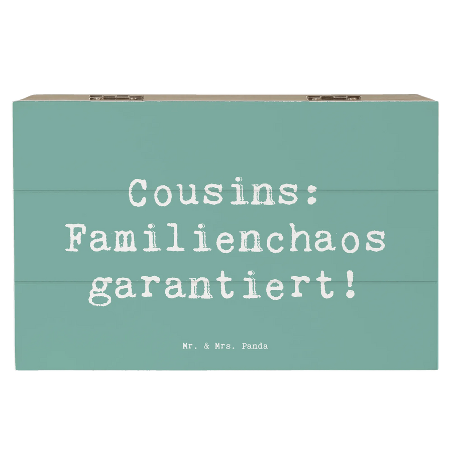 Die wunderschöne Holzkiste von Mr. & Mrs. Panda ist ein wahrhaft magisches Geschenk für alle Verwandten, besonders für deine tollen Cousins und Cousinen! Mit dem charmanten Spruch "Cousins: Familienchaos garantiert!" ist diese Kiste nicht nur ein praktischer Aufbewahrungsort, sondern auch ein liebevolles Zeichen der Verbundenheit.
