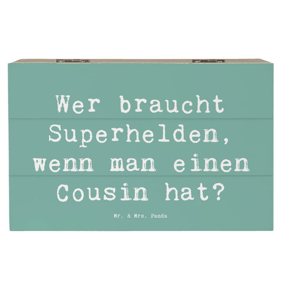 Entdecke die bezaubernde Holzkiste mit dem liebevollen Motto "Wer braucht Superhelden, wenn man einen Cousin hat?" von Mr. & Mrs. Panda! Diese einzigartige Kiste ist das perfekte Geschenk für jeden Cousin oder jede Cousine und eignet sich hervorragend als Erinnerungskiste für besondere Anlässe.