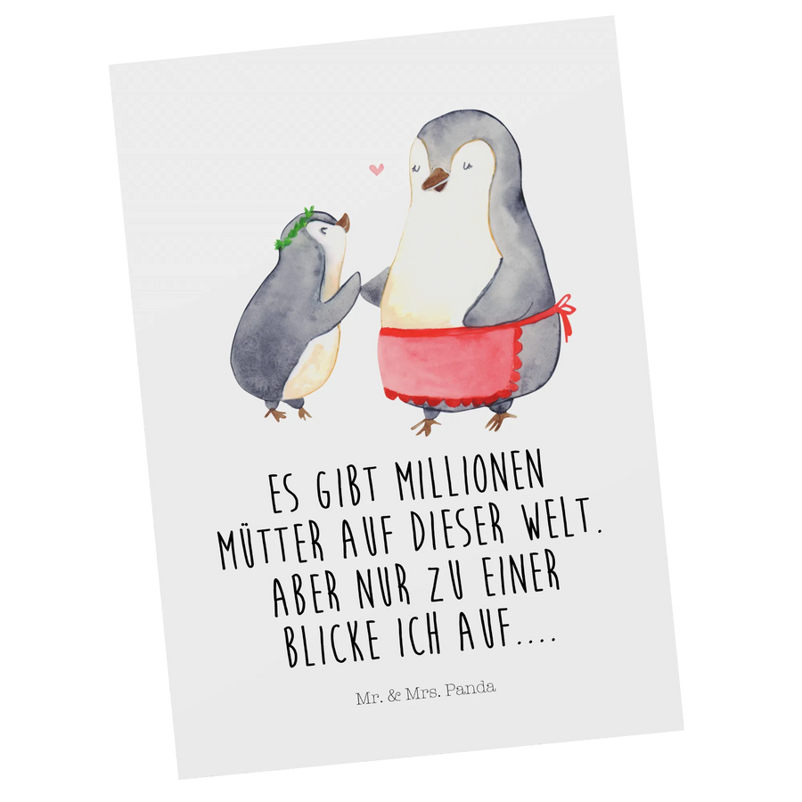 Pocztówka Pingwin z dzieckiem - z napisem - Biały