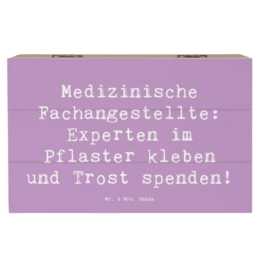 Entdecke die zauberhafte Holzkiste "Medizinische Fachangestellte" von Mr. & Mrs. Panda! Diese wunderschöne Kiste ist nicht nur ein praktischer Aufbewahrungsort für all deine Schätze, sondern auch ein perfektes Geschenk für alle, die in der medizinischen Branche tätig sind. Mit dem liebevoll gestalteten Slogan "Medizinische Fachangestellte: Experten im Pflaster kleben und Trost spenden!" bringt sie ein Lächeln ins Gesicht!