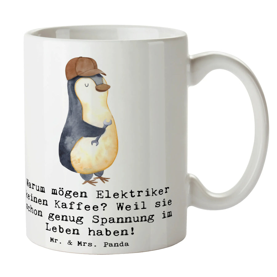Suchst Du ein Geschenk, das sowohl praktisch als auch herzlich ist? Unsere Tasse Elektriker aus der Berufe-Kollektion von Mr. & Mrs. Panda vereint beides: ein zartes Aquarellmotiv von Mrs. Panda und den witzigen Spruch „Warum mögen Elektriker keinen Kaffee? Weil sie schon genug Spannung im Leben haben!" – ideal für jeden, der seinen Beruf mit Humor nimmt.