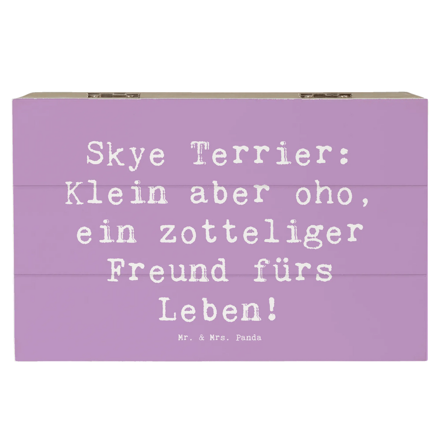 Die bezaubernde Holzkiste von Mr. & Mrs. Panda ist das perfekte Geschenk für jeden Hundefan, insbesondere für Liebhaber der Hunderasse Skye Terrier. Diese kreative Schatzkiste mit dem liebevollen Spruch "Skye Terrier: Klein aber oho, ein zotteliger Freund fürs Leben!" bietet nicht nur einen stilvollen Aufbewahrungsort für all deine Erinnerungen, sondern wird auch ein echtes Highlight in jedem Raum.
