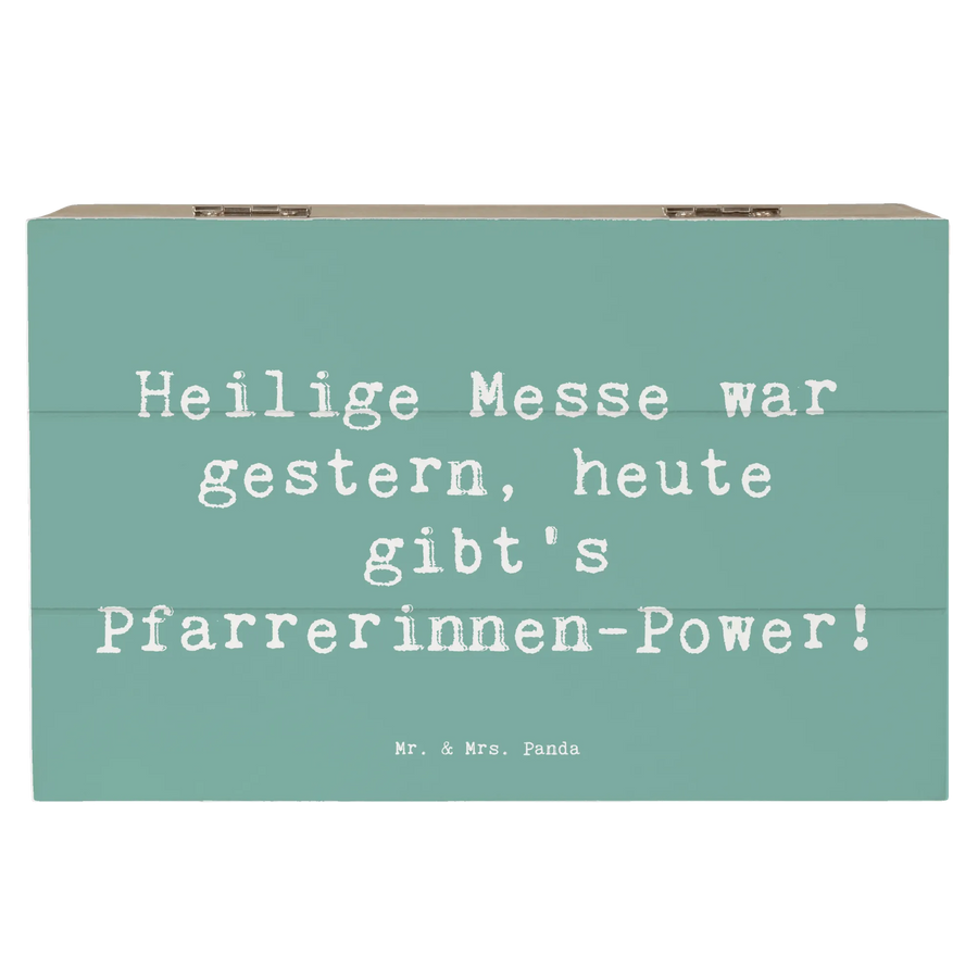 Du suchst das perfekte Geschenk für eine engagierte Pfarrerin oder deine evangelische Freundin? Unsere wunderschöne Holzkiste von Mr. & Mrs. Panda, bedruckt mit dem liebevollen Spruch "Heilige Messe war gestern, heute gibt's Pfarrerinnen-Power!", ist genau das richtige! Diese Erinnerungskiste eignet sich hervorragend, um all die kleinen und großen Schätze bestimmter Momente im Leben zu bewahren.