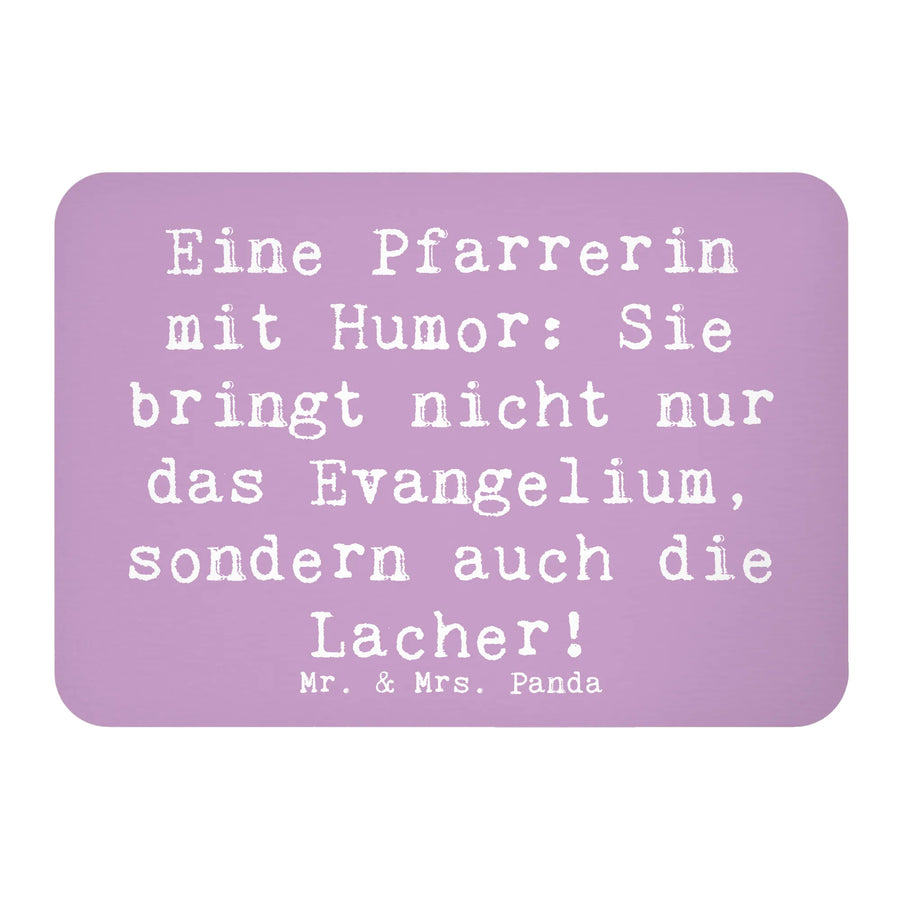 Der Kühlschrankmagnet mit dem Motto "Eine Pfarrerin mit Humor: Sie bringt nicht nur das Evangelium, sondern auch die Lacher!" von Mr. & Mrs. Panda ist ein liebevolles und praktisches Geschenk für alle, die ihren Glauben mit einem Augenzwinkern leben.