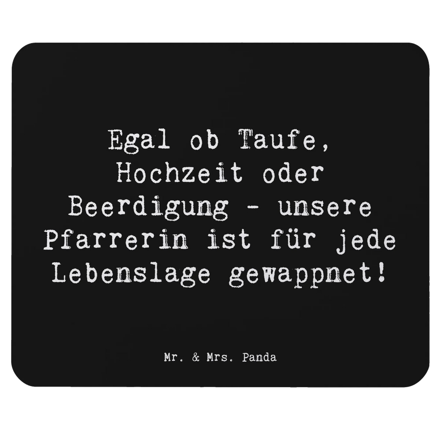 Das Motto auf dem Mauspad, "Egal ob Taufe, Hochzeit oder Beerdigung - unsere Pfarrerin ist für jede Lebenslage gewappnet!", bringt nicht nur ein Lächeln auf das Gesicht, sondern ist auch eine wunderbare Art, die Wertschätzung für den Beruf und die Menschen, die in diesen Berufen arbeiten, zum Ausdruck zu bringen.