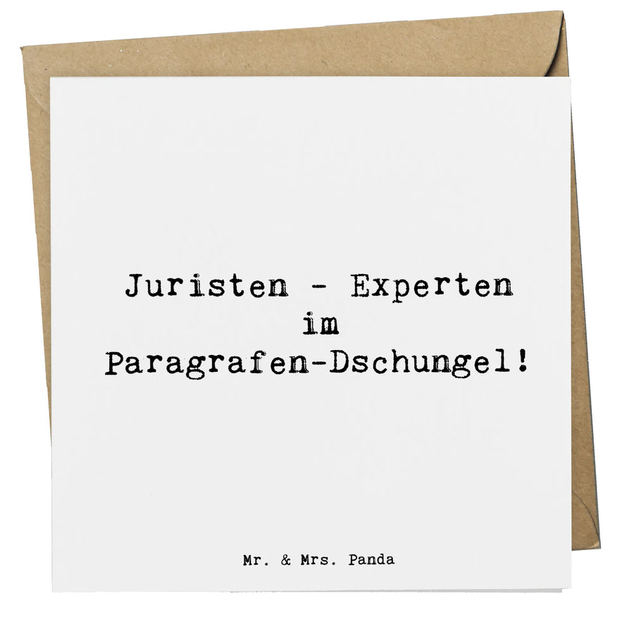 Die Deluxe Karte 'Jurist' aus der Kollektion Berufe von Mr. & Mrs. Panda ist die perfekte Wahl für alle, die einen lieben Juristen im Freundes- oder Familienkreis haben. Mit ihrem charmanten Spruch 'Juristen - Experten im Paragrafen-Dschungel!' ist sie ein hervorragendes Geschenk für Anlässe wie Jubiläen, Hochzeiten oder einfach als nette Geste. Die Karte hat die Maße 140 mm x 140 mm und besteht aus hochwertigem 300 Gramm Karton, der für eine edle Optik sorgt und gleichzeitig sehr stabil ist.