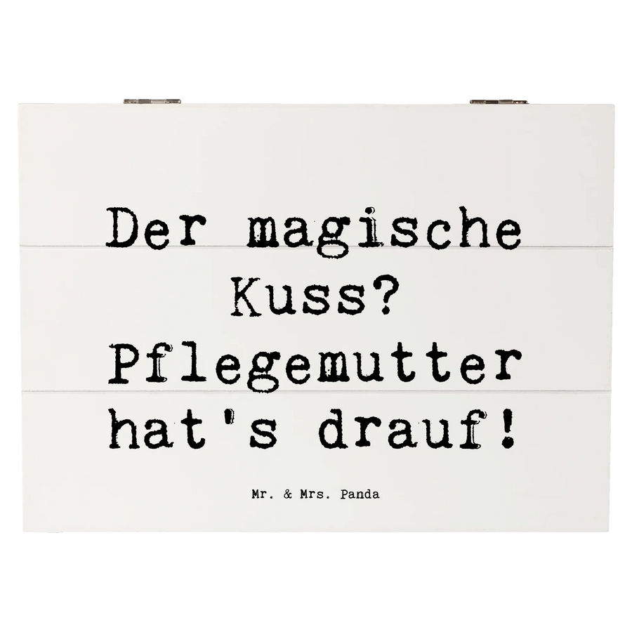 Du suchst nach einem ganz besonderen Geschenk für Deine Pflegemutter? Unsere wunderschöne Holzkiste von Mr. & Mrs. Panda ist die ideale Wahl! Mit liebevollen Motiven und dem Slogan "Der magische Kuss? Pflegemutter hat's drauf!" erfüllt sie nicht nur einen praktischen Zweck, sondern zeigt auch Wertschätzung und Dankbarkeit für die unermüdliche Arbeit, die Pflegemütter täglich leisten.
