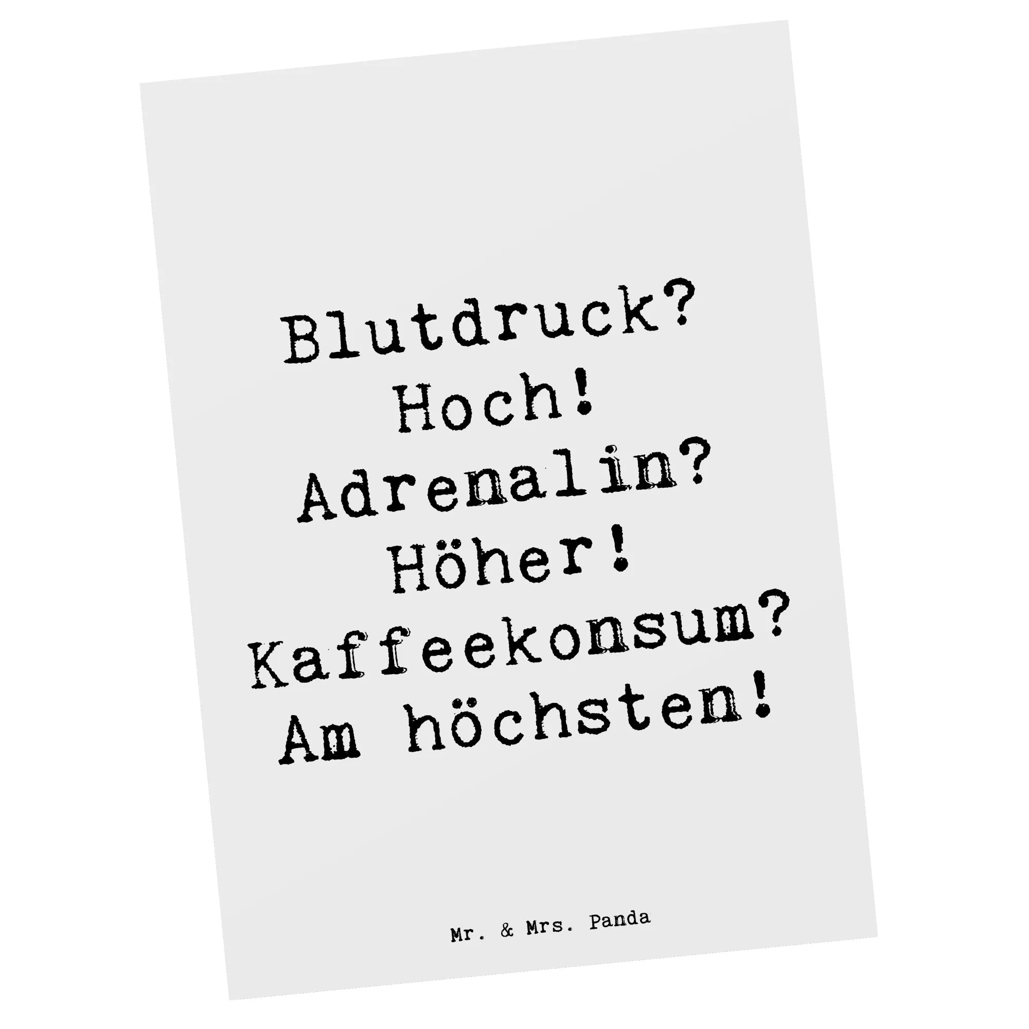 Postkarte Spruch Blutdruck? Hoch! Adrenalin? Höher! Kaffeekonsum? Am h – Mr. & Mrs. Panda