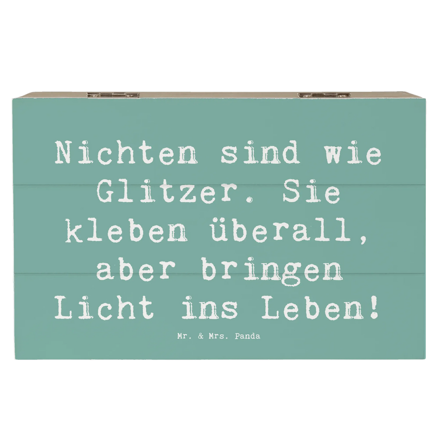 Die wunderschöne Holzkiste von Mr. & Mrs. Panda ist nicht nur ein hübsches Deko-Objekt, sondern auch eine liebevolle Erinnerungskiste für Deine Nichte. Mit dem bezaubernden Spruch "Nichten sind wie Glitzer. Sie kleben überall, aber bringen Licht ins Leben!" bringt diese Schatzkiste noch mehr Freude in Dein Zuhause.