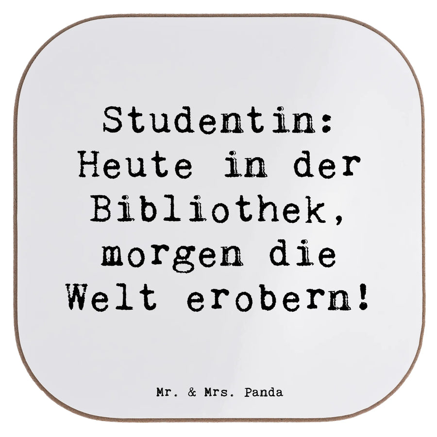 Untersetzer Spruch Studentin: Heute in der Bibliothek, morgen die Welt erobern! - Weiß