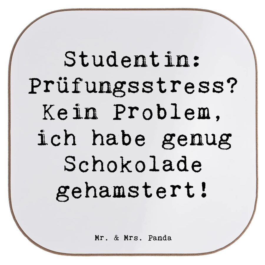 Untersetzer Spruch Studentin: Prüfungsstress? Kein Problem, ich habe genug Schokolade gehamstert! - Weiß