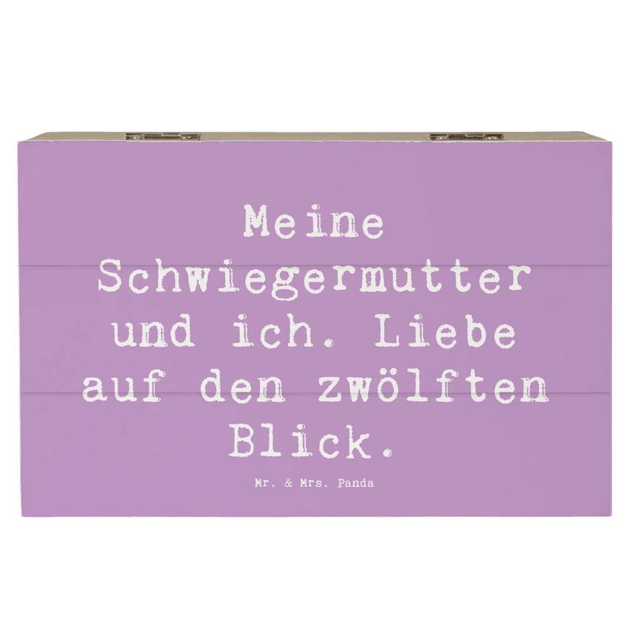 Eine Holzkiste voller Gefühle: Diese Erinnerungskiste von Mr. & Mrs. Panda aus der Kollektion Familie & Verwandte trägt den liebevollen Spruch „Meine Schwiegermutter und ich. Liebe auf den zwölften Blick.“ und ist das perfekte Geschenk, um Nähe, Dankbarkeit und ein Lächeln zu verschenken.
