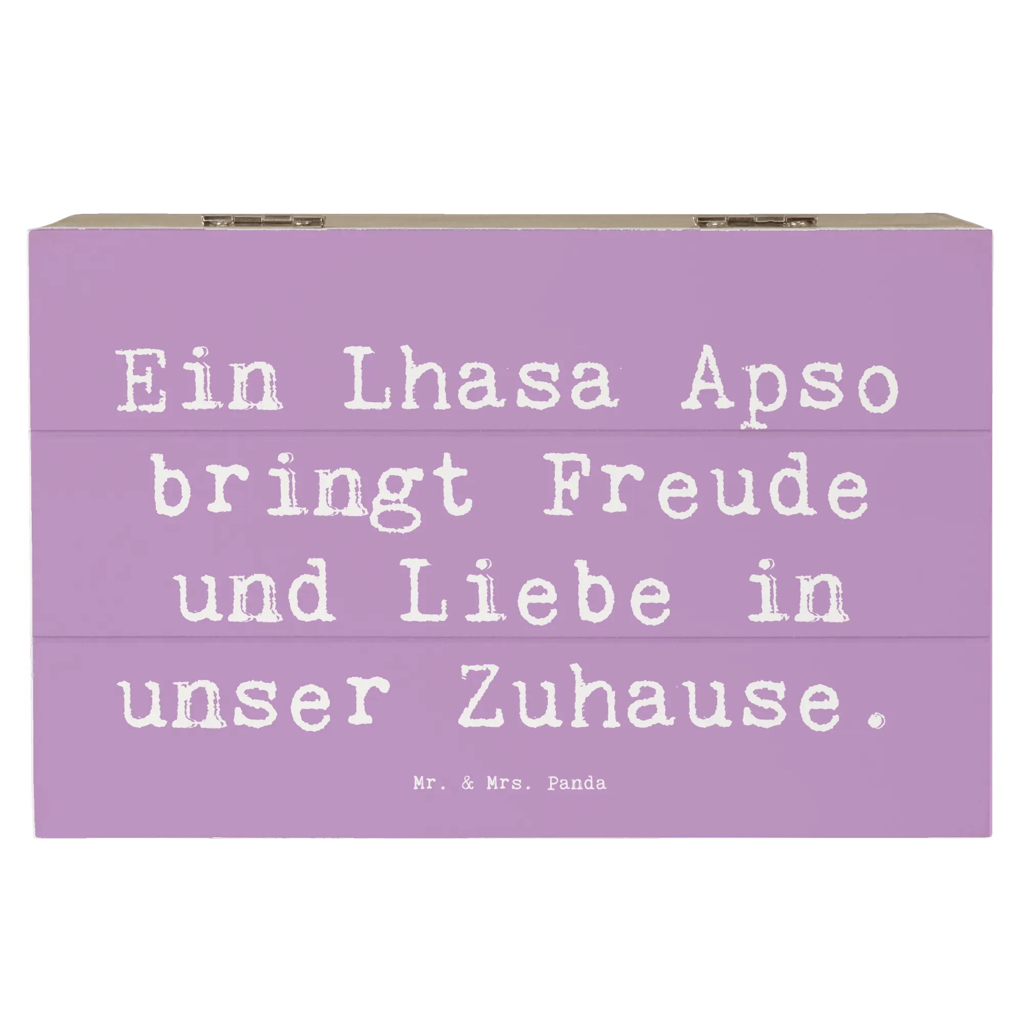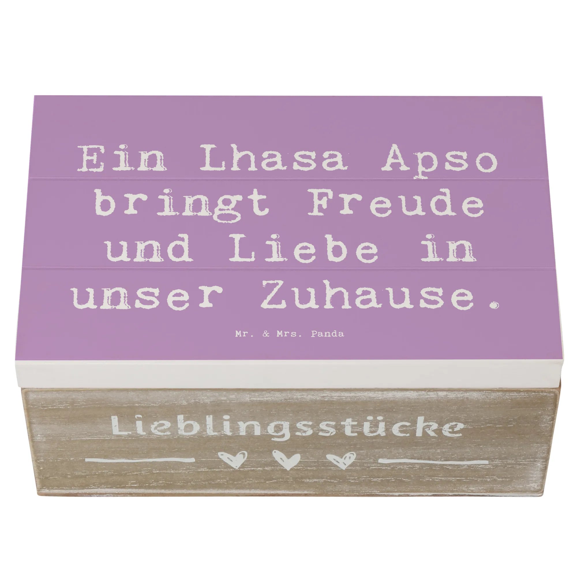 Die wunderschöne Holzkiste von Mr. & Mrs. Panda ist das perfekte Geschenk für Hundefans, insbesondere für Liebhaber der Hunderasse Lhasa Apso. Mit ihrem charmanten Design und dem liebevollen Spruch „Ein Lhasa Apso bringt Freude und Liebe in unser Zuhause“ ist diese Erinnerungskiste nicht nur ein echter Hingucker, sondern auch eine wundervolle Möglichkeit, kostbare Erinnerungen zu bewahren.
