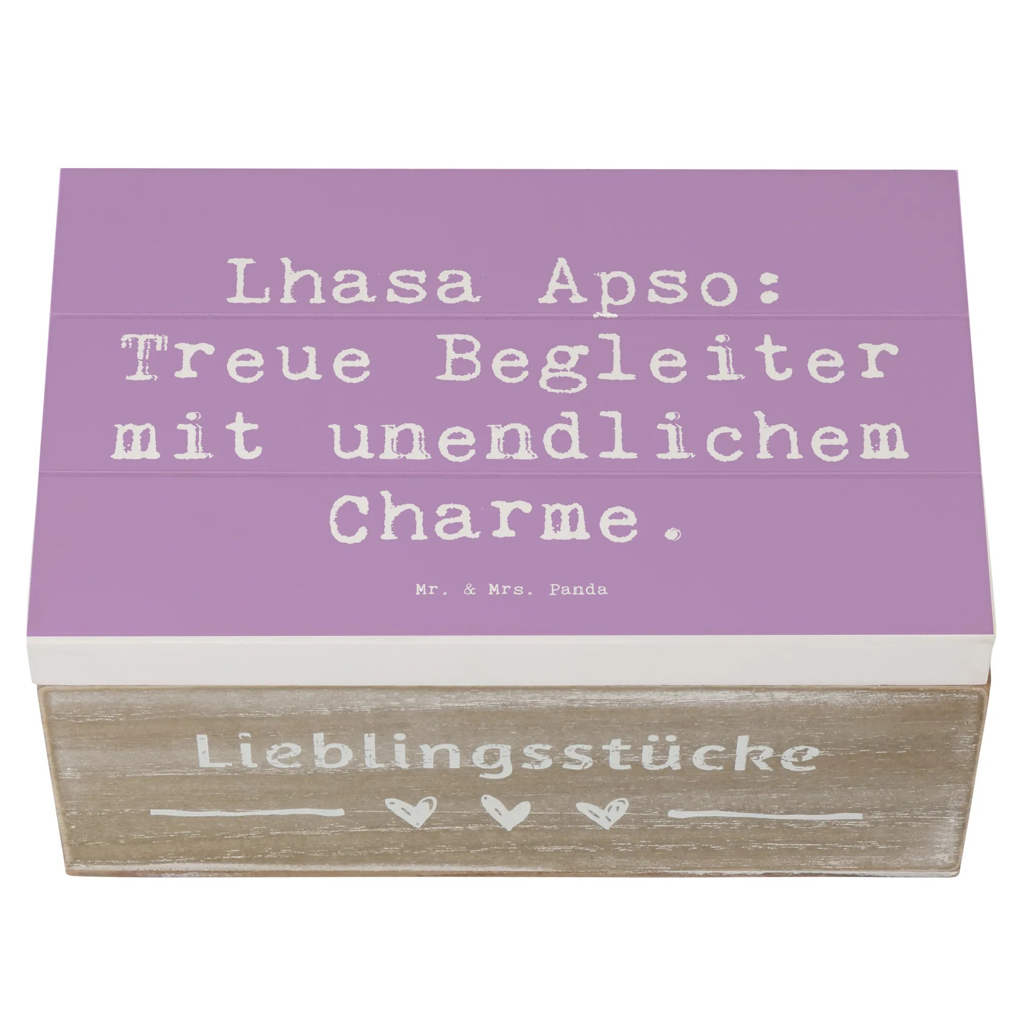 Die wunderschöne Holzkiste von Mr. & Mrs. Panda ist der perfekte Begleiter für jeden Hundefan, insbesondere für Liebhaber der Hunderasse Lhasa Apso. Mit dem liebevoll gestalteten Motiv "Lhasa Apso: Treue Begleiter mit unendlichem Charme" wird diese Kiste zu einem besonderen Schmuckstück in deinem Zuhause.