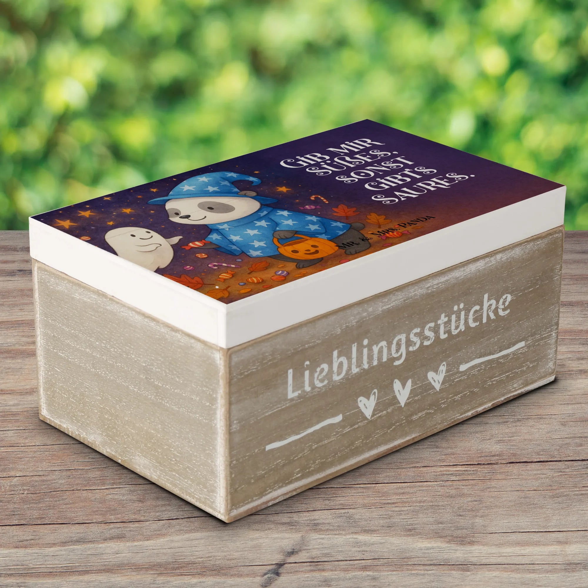 Holzkiste Panda Zauberer Design - 22 x 15 cm - mit Spruch