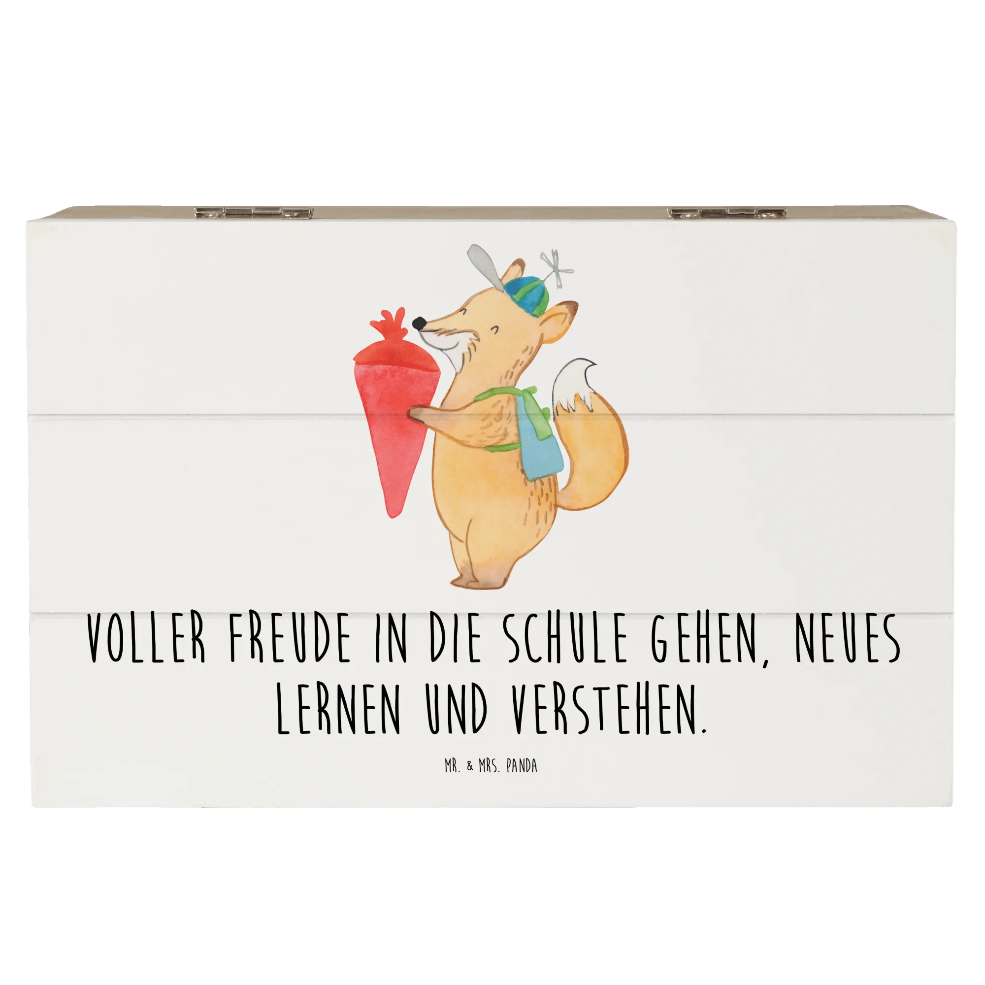 Die Holzkiste Schulanfang von Mr. & Mrs. Panda ist das perfekte Geschenk, um den Einstieg in die Schule unvergesslich zu machen. Mit ihrem liebevollen Motiv und dem inspirierenden Slogan "Voller Freude in die Schule gehen, Neues lernen und verstehen" bietet diese Kiste einen Platz für all die besonderen Erinnerungen, die ein Schulkind sammeln kann.