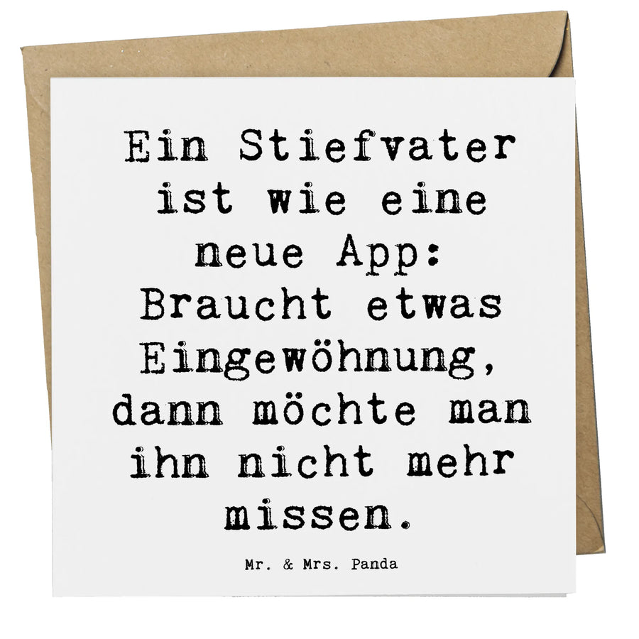 Diese hochwertige Grußkarte wurde mit einem charmanten Motiv und dem Spruch "Ein Stiefvater ist wie eine neue App: Braucht etwas Eingewöhnung, dann möchte man ihn nicht mehr missen." gestaltet – perfekt geeignet für jeden Anlass, sei es ein Geburtstag, eine Hochzeit oder einfach nur als herzliche Botschaft für deinen Stiefvater.