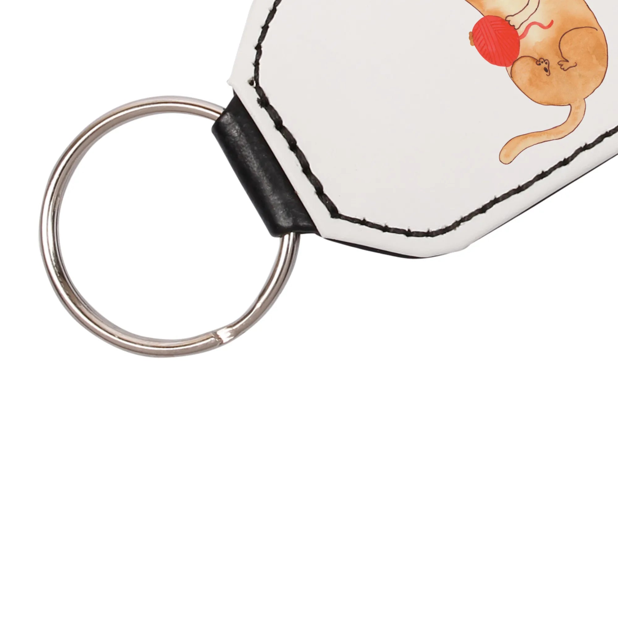 Prostokątny brelok kot wełna - Pastelowy żółty