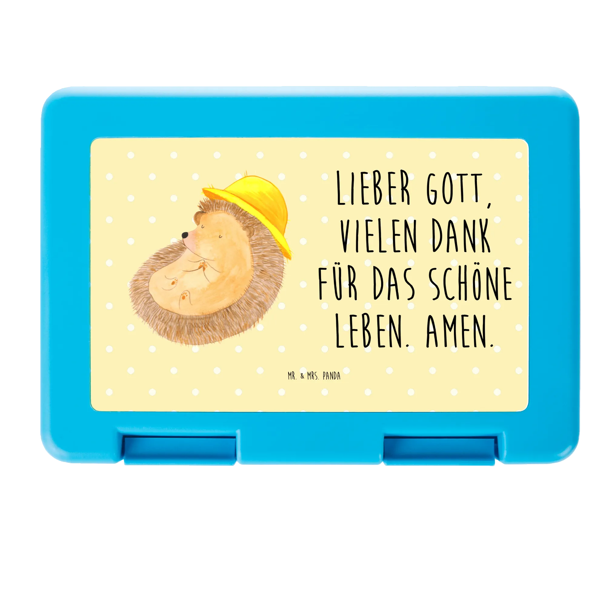 Pudełko na kanapki jeż Modlić się - z napisem - Pastelowy żółty