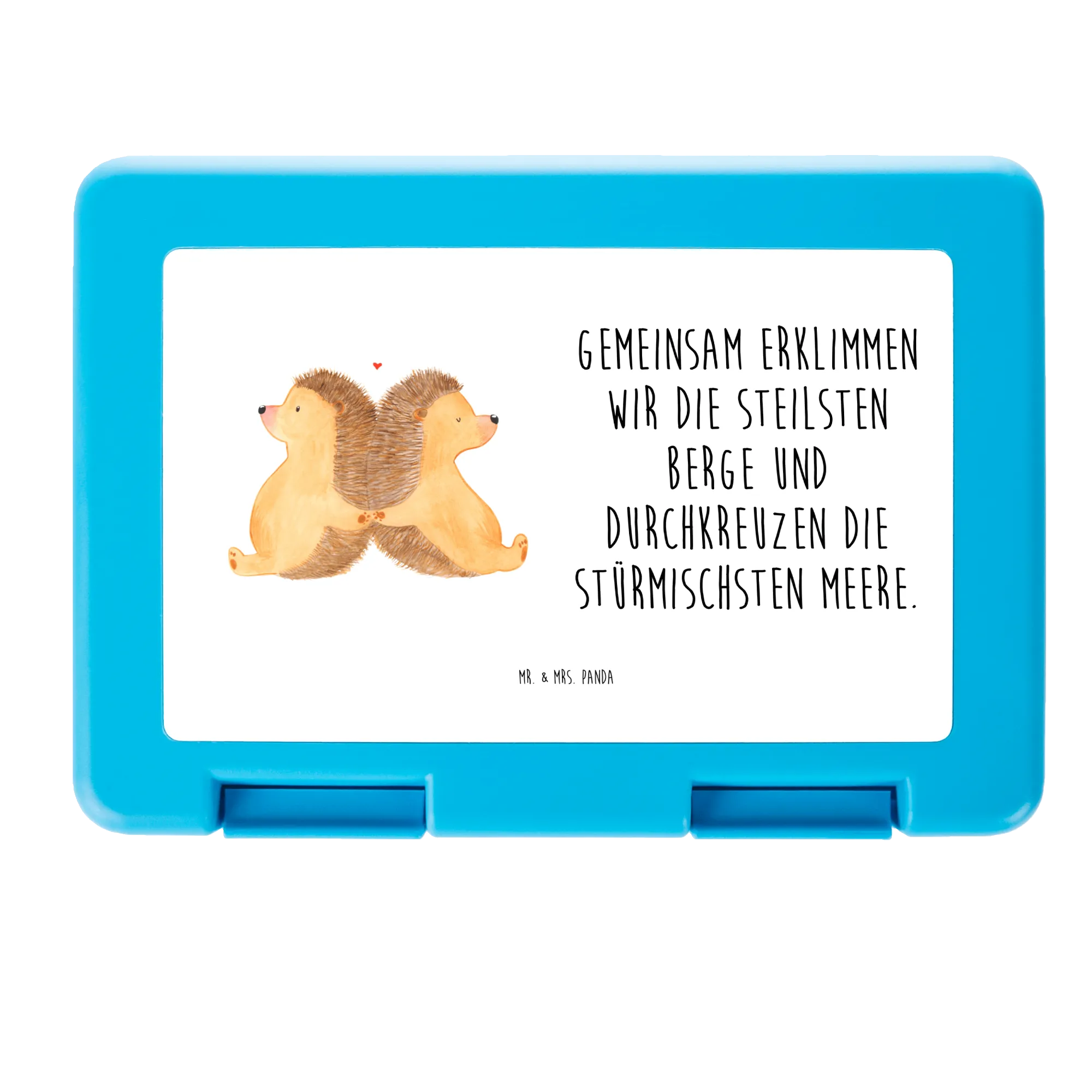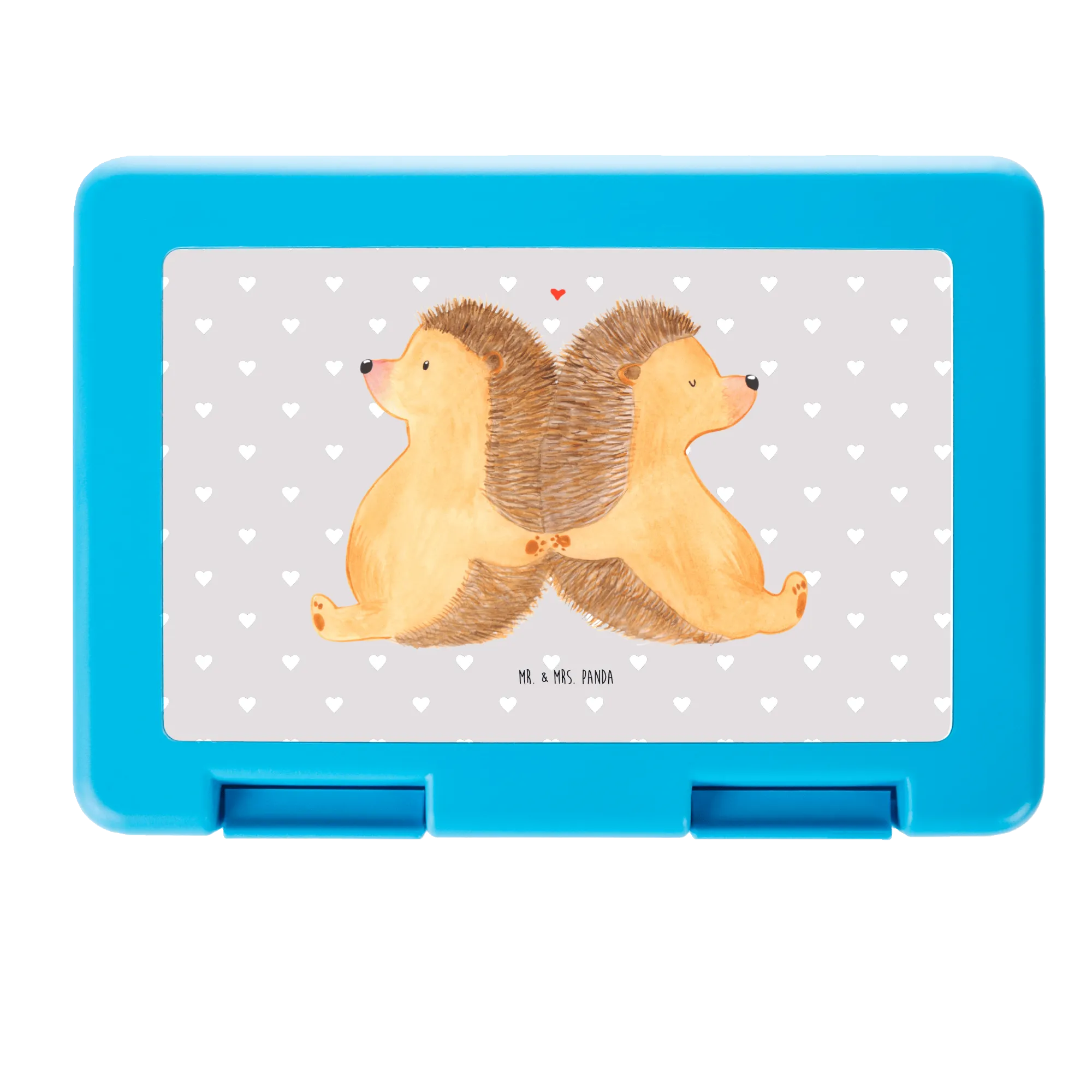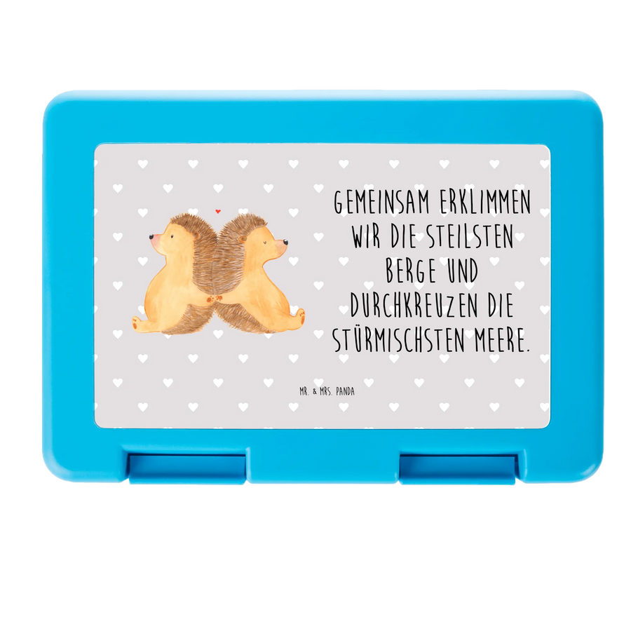 Pudełko na kanapki Jeże trzymające się za łapki - z napisem - Pastelowy szary