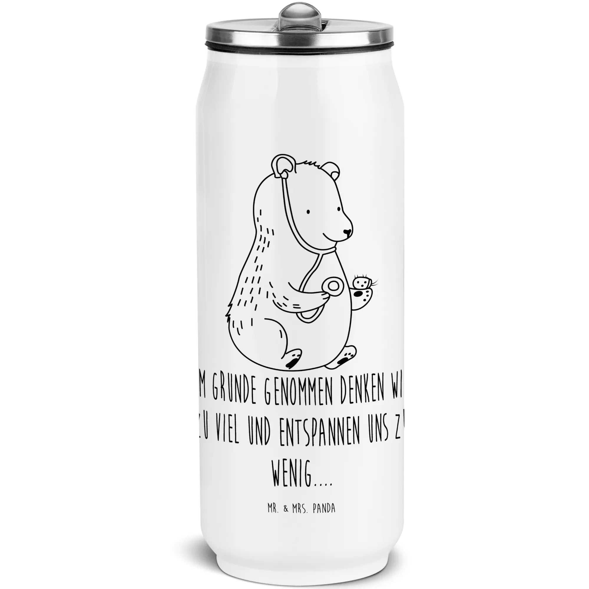 Die wunderschöne Edelstahl Getränkedosen Trinkflasche von Mr. & Mrs. Panda mit dem süßen Motiv "Bär Arzt" ist das perfekte Geschenk für alle, die Bären lieben und einen besonderen Bezug zu Ärzten und der Medizin haben. Dieses niedliche Design mit einem Bären, der einen kleinen Marienkäfer behandelt, zaubert garantiert ein Lächeln auf dein Gesicht und macht jeden Schluck zu einem besonderen Erlebnis.