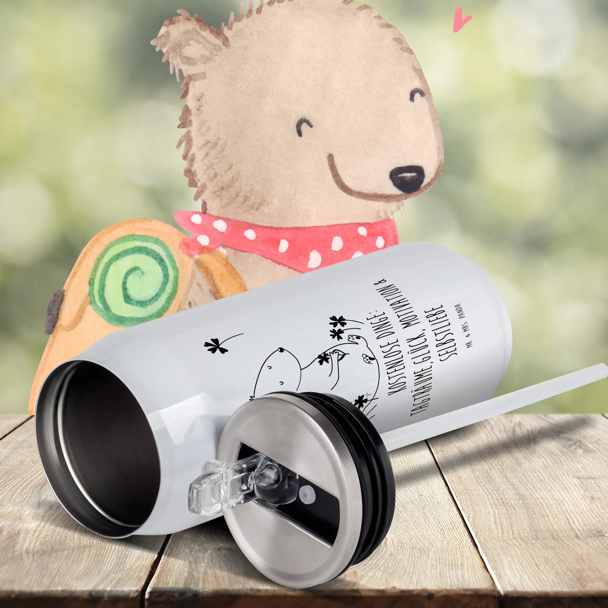 Die Edelstahl Getränkedosen Trinkflasche "Hund Kleeblatt" von Mr. & Mrs. Panda ist das perfekte Geschenk für jeden Hundeliebhaber! Sie vereint Motivationssprünge und Glücksgefühle in einem einzigartigen Design, ideal für inspirierende Tagträume! Mit ihrem niedlichen Aufdruck eines süßen Hundes und einem Kleeblatt ist diese Flasche ein echter Glücksbringer für alle, die ein Herz für Tiere haben. Ob beim Wandern, im Büro oder beim Picknick – diese Trinkflasche ist nicht nur praktisch, sondern auch ein echter Hingucker.