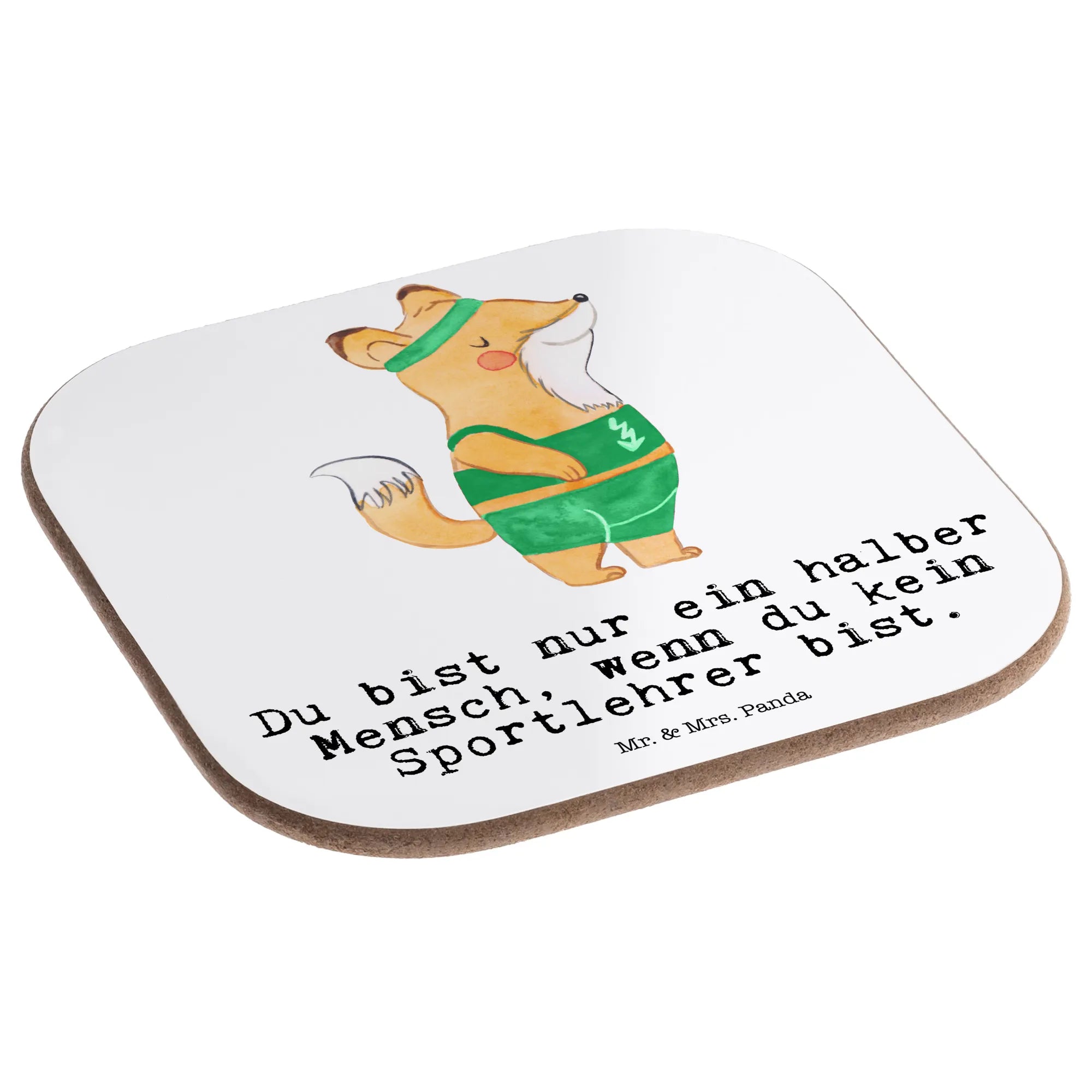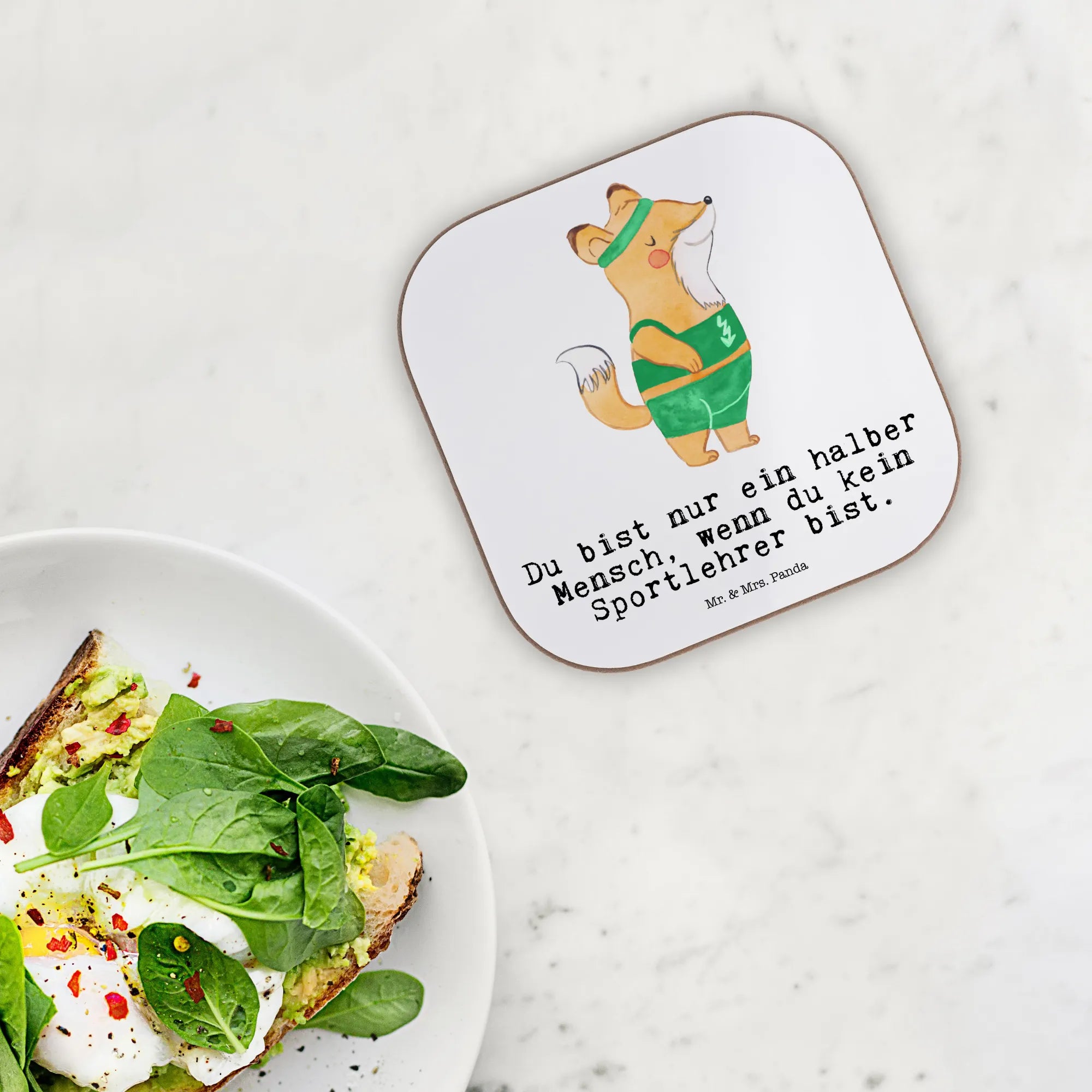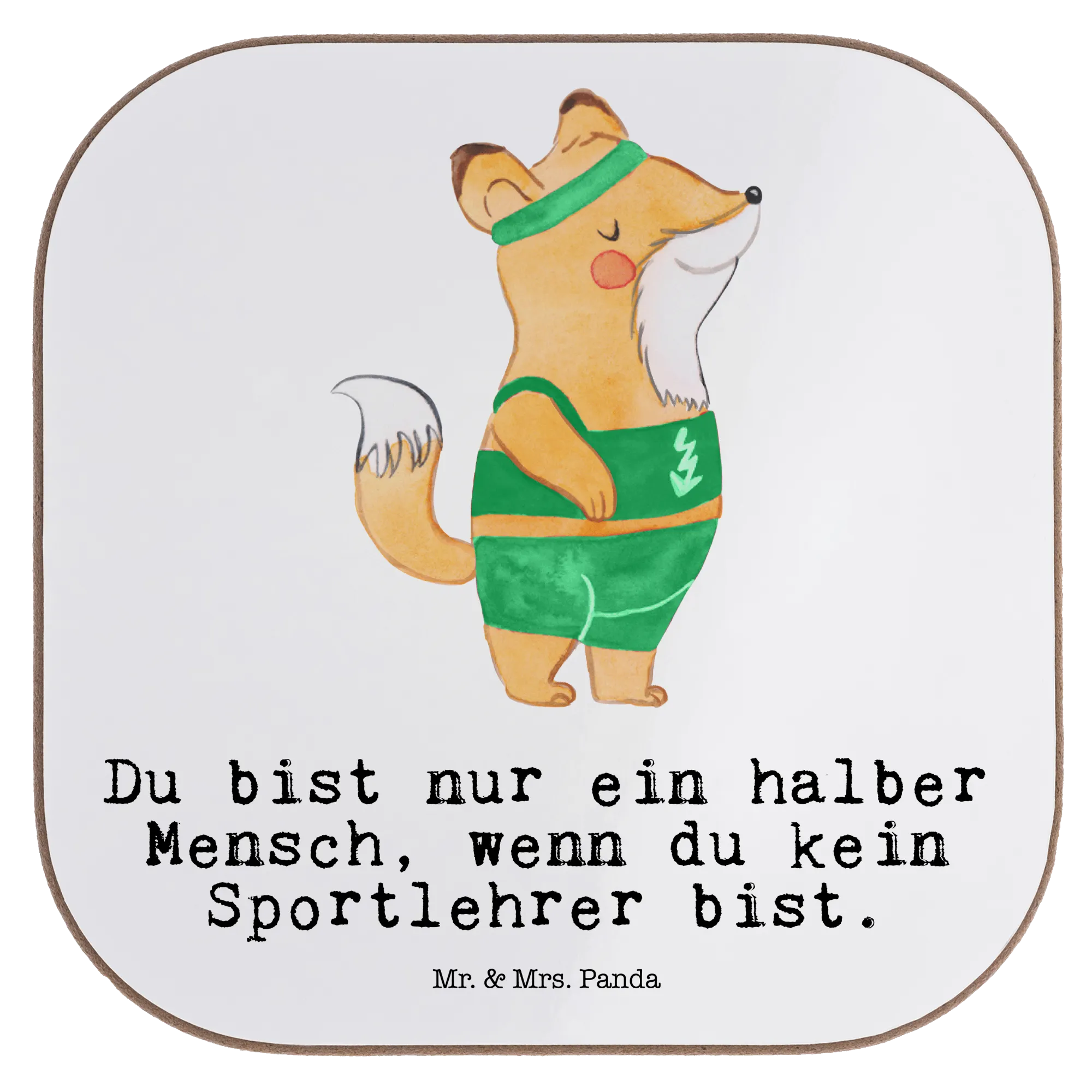 Dieser quadratische Untersetzer von Mr. & Mrs. Panda ist das perfekte Geschenk für alle Sportlehrerinnen und Sportlehrer. Mit dem charmanten Fuchs im Sportoutfit und dem Spruch „Du bist nur ein halber Mensch, wenn du kein Sportlehrer bist.“ bringt er Humor und Herz auf jeden Tisch.
