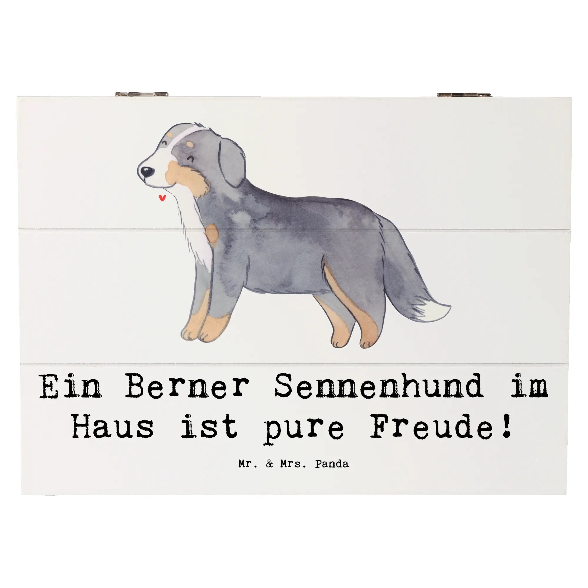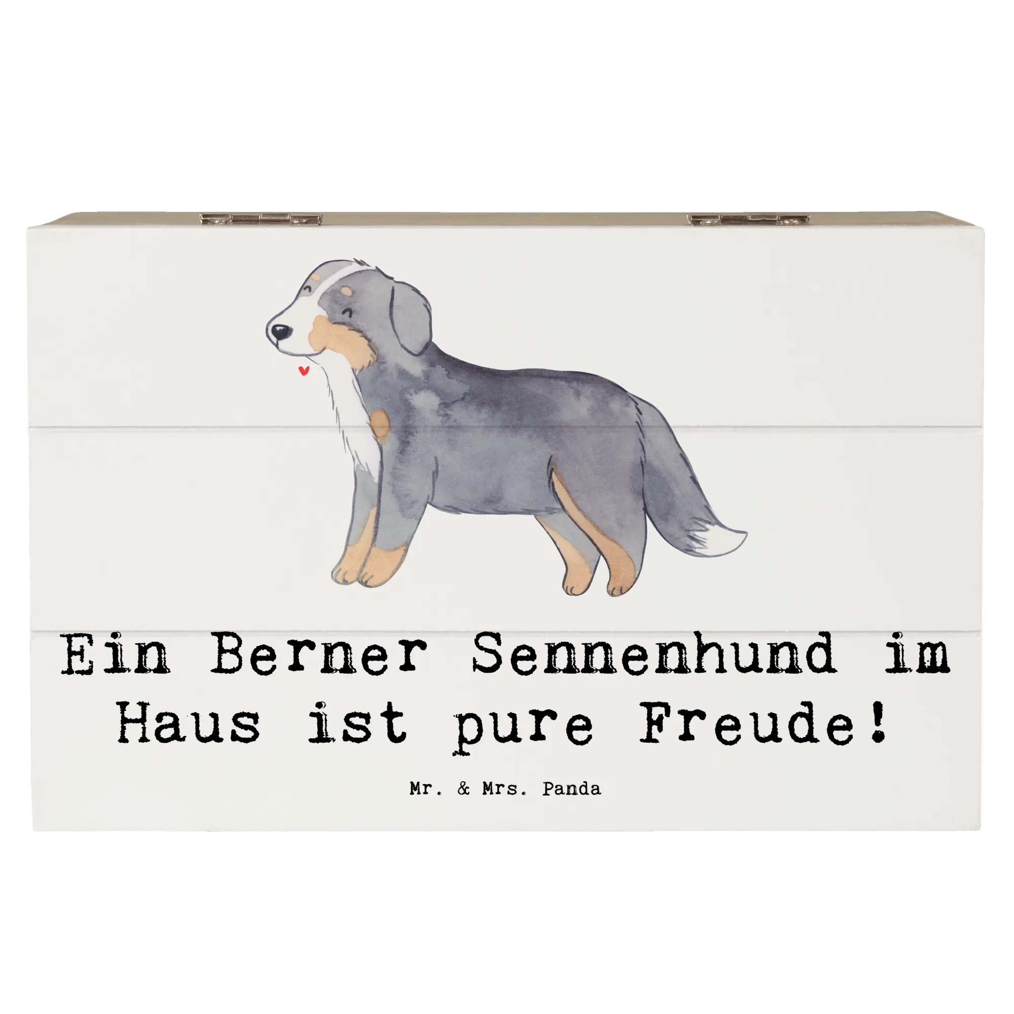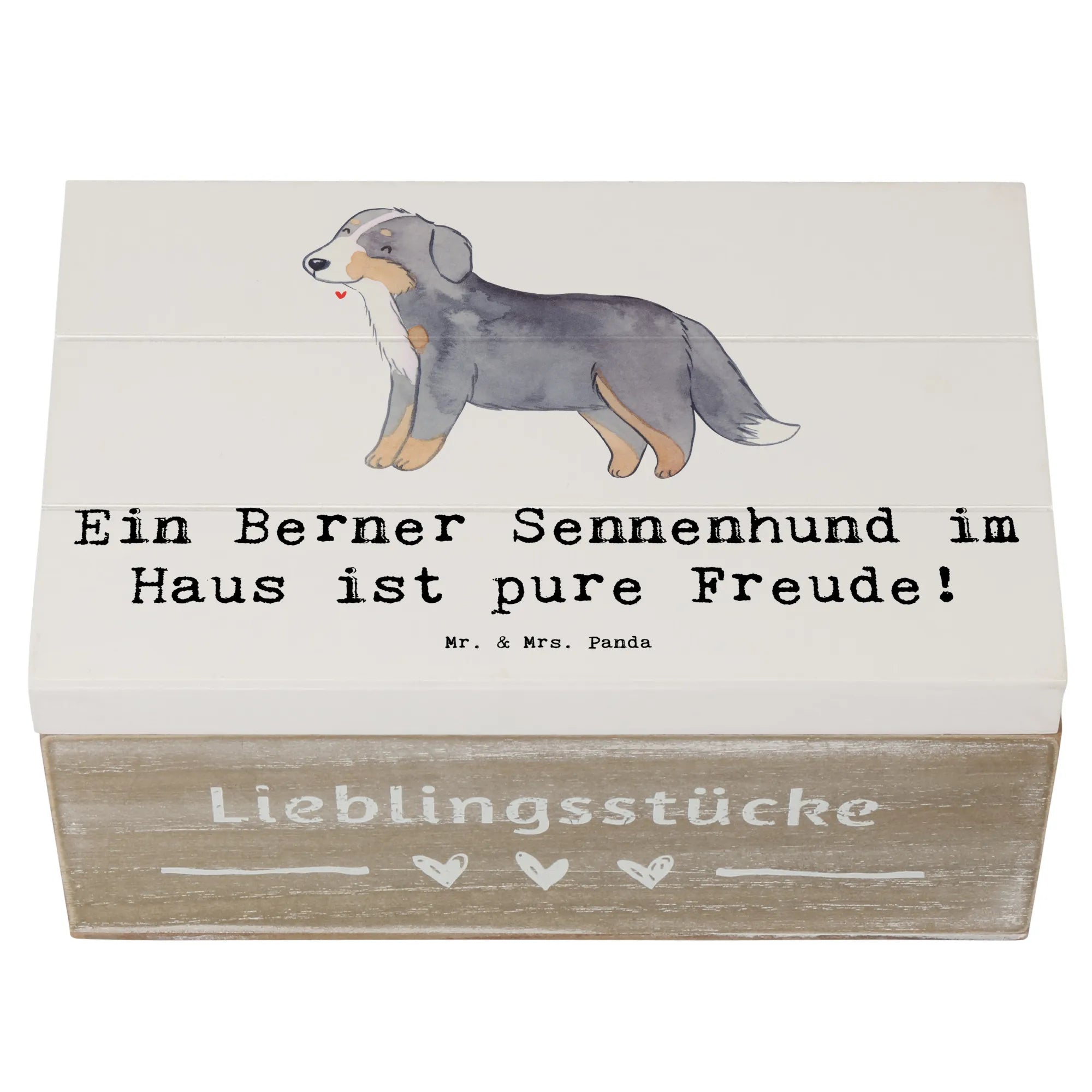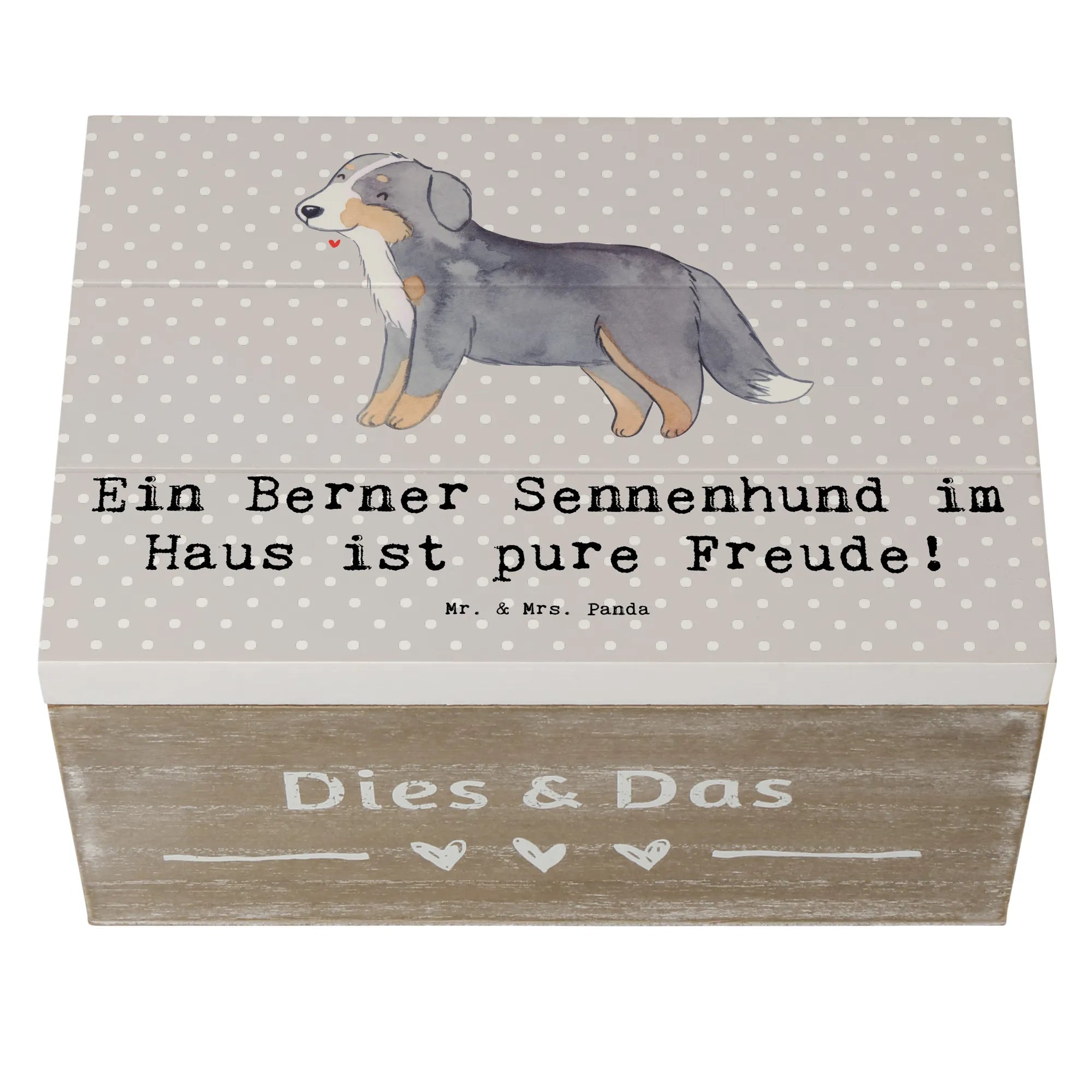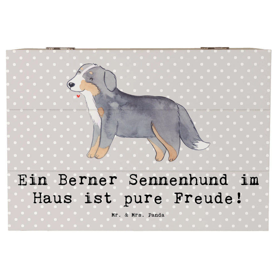 Skrzynia drewniana Ein Berner Sennenhund im Haus ist pure Freude! - 22 x 15 cm - Pastelowy szary
