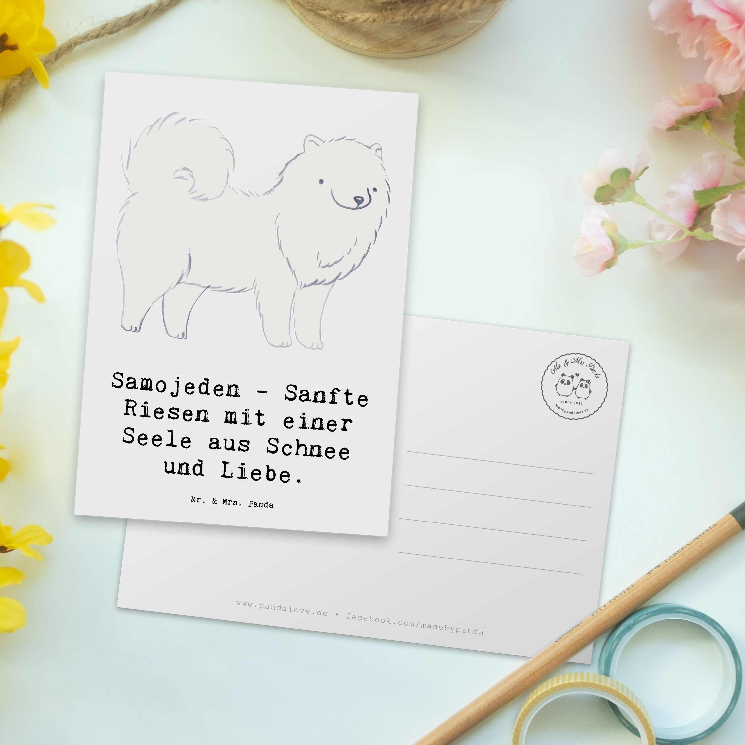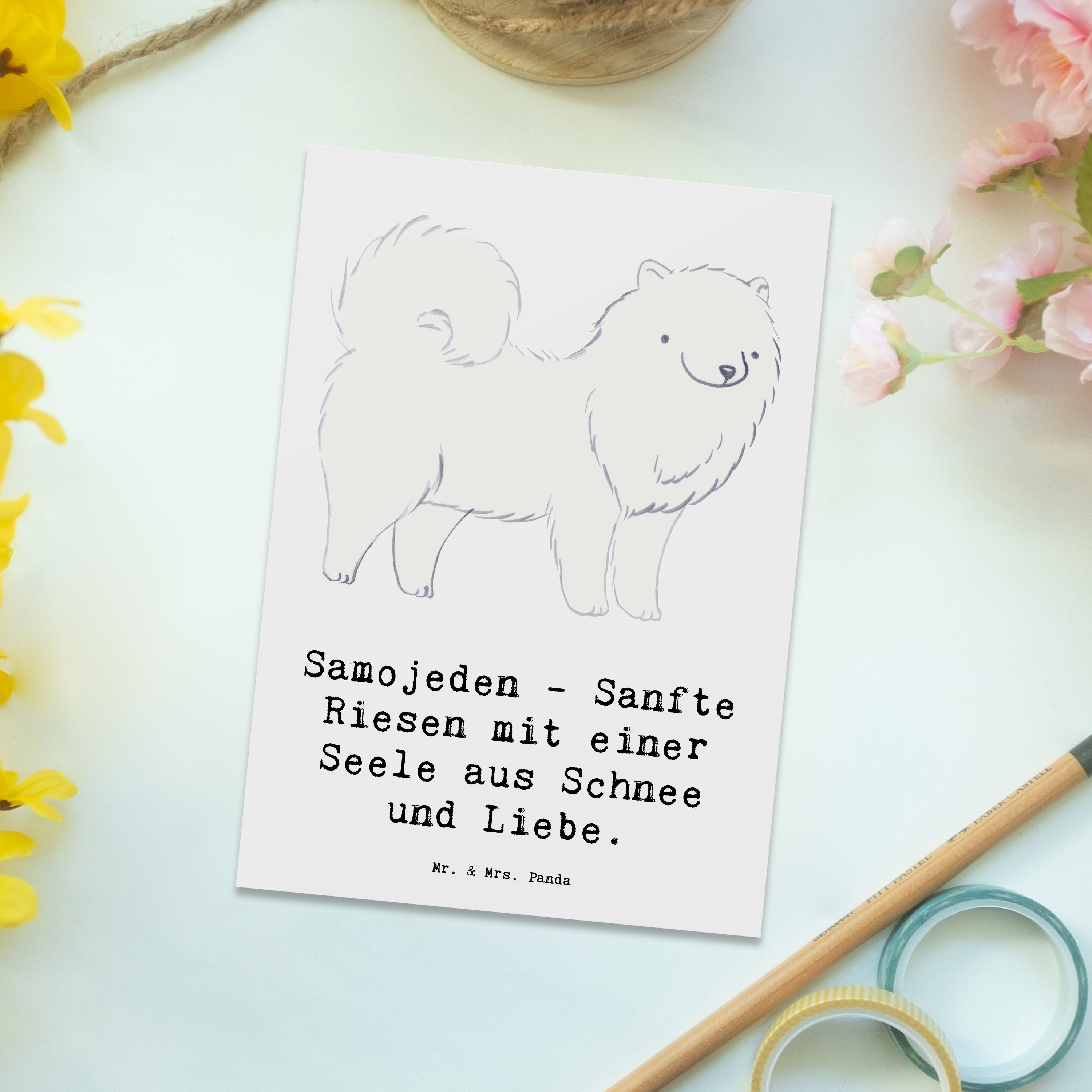 Postkarte Samojede Liebe - Weiß