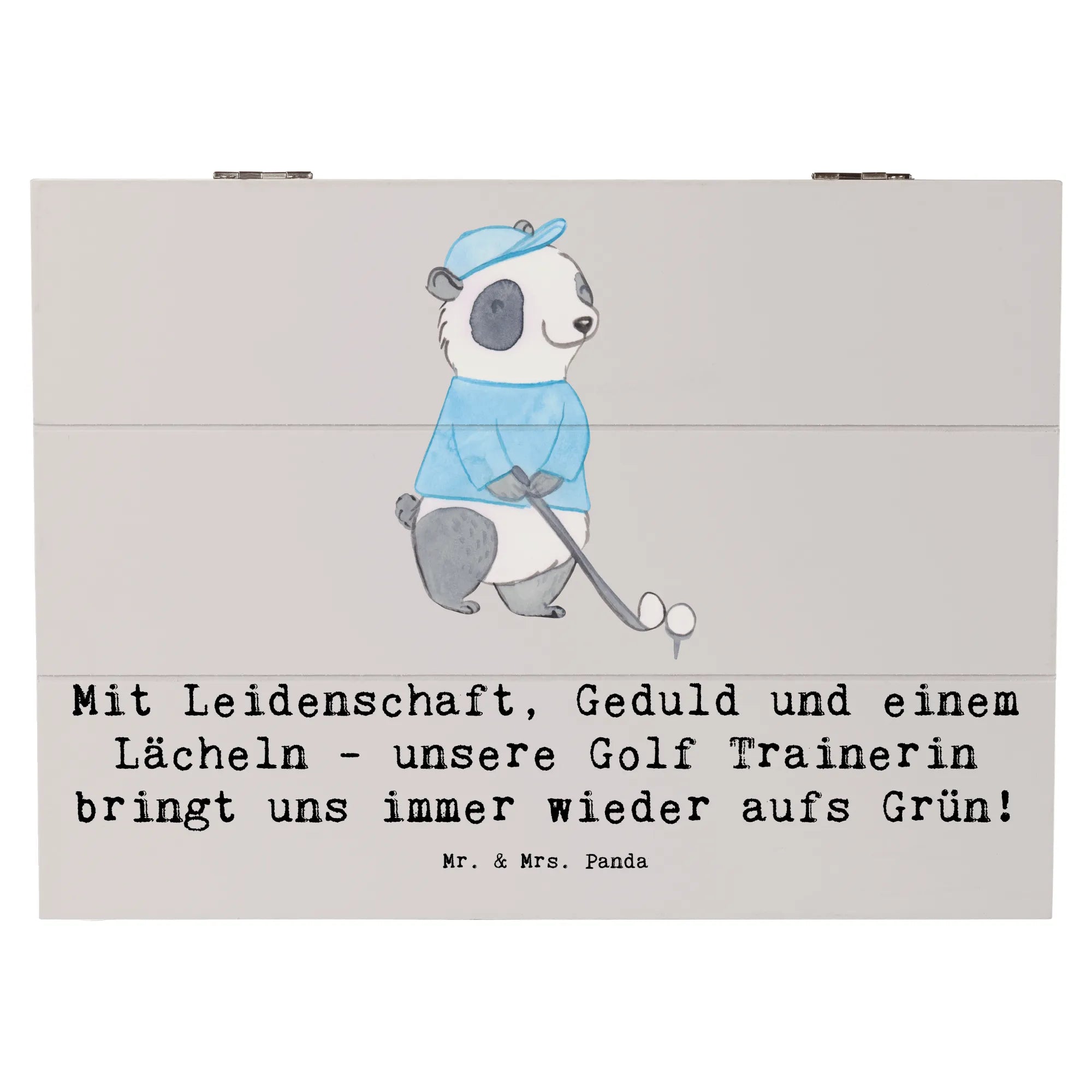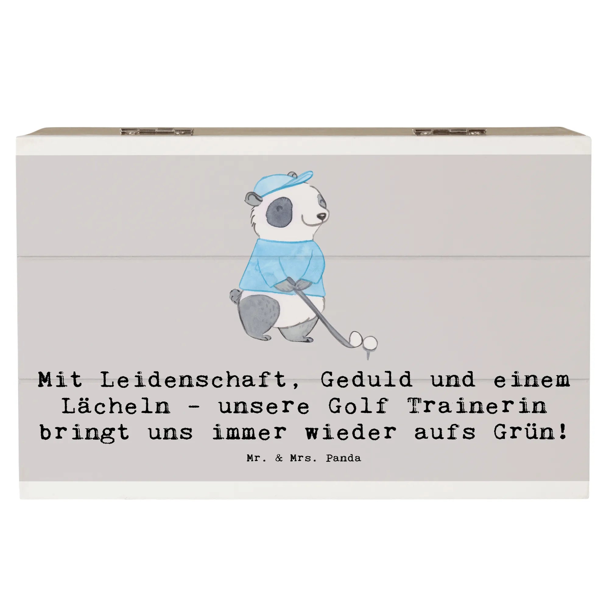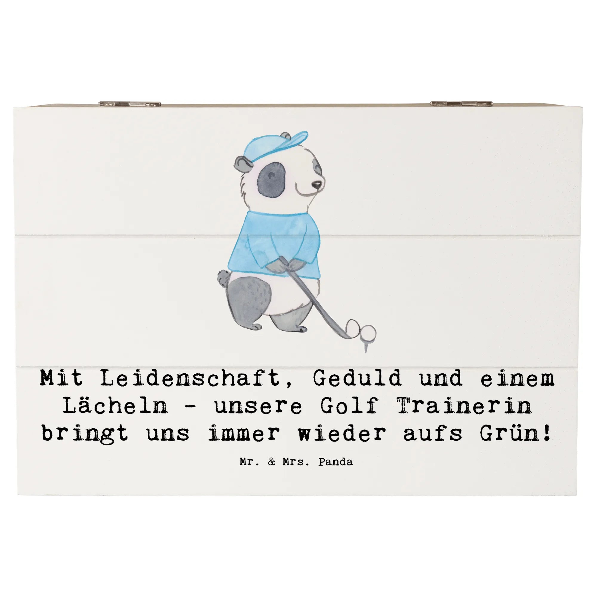 Entdecke die wundervolle Holzkiste "Golf Trainerin" von Mr. & Mrs. Panda - das perfekte Geschenk für jede Trainerin, die mit Leidenschaft, Geduld und einem Lächeln unsere Golfkünste verbessert.