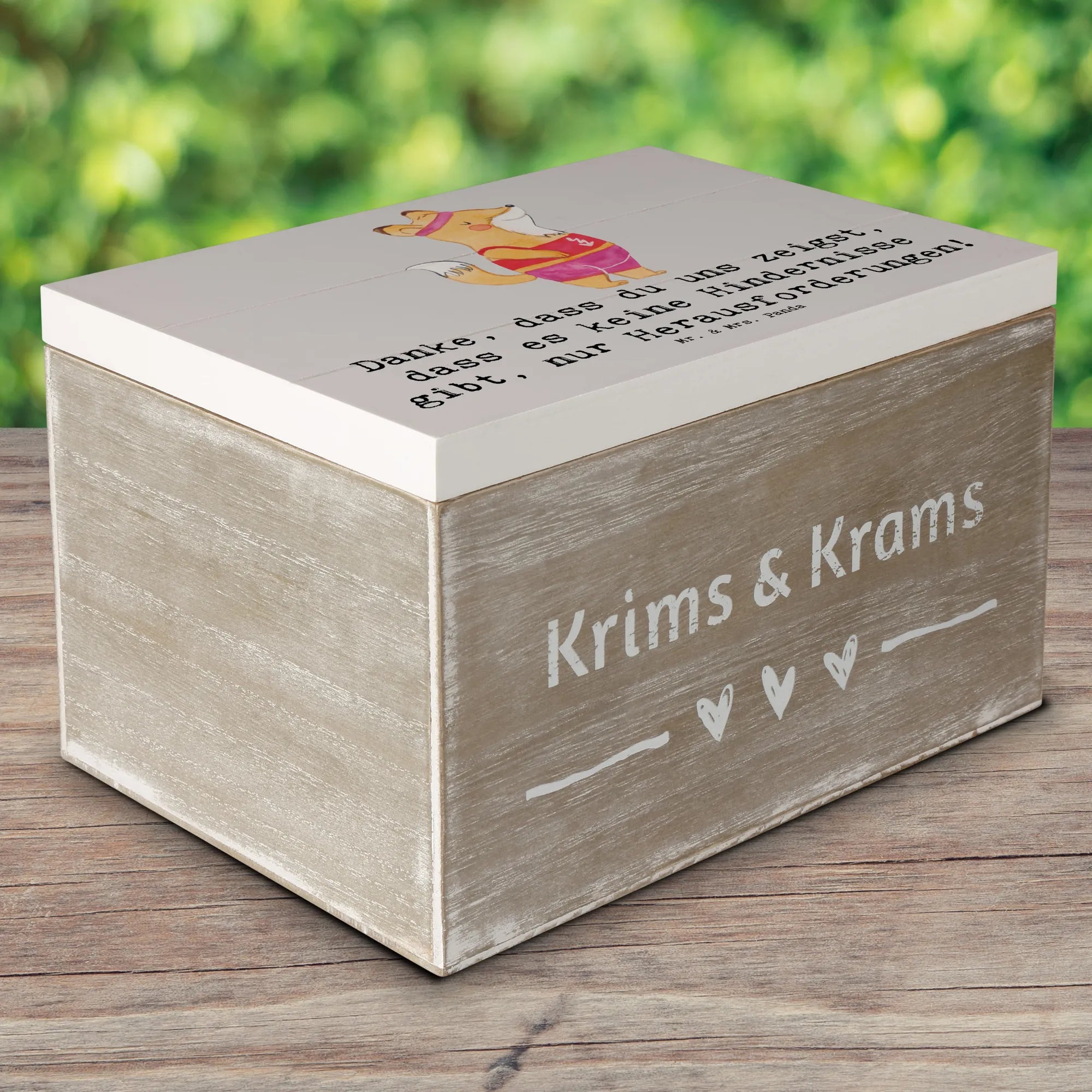 Pflegehinweis: einfach mit einem feuchten Tuch abwischen, damit sie immer schön bleibt. Lass deine Trainerin spüren, wie besonders sie ist mit dieser Holzkiste von Mr. & Mrs. Panda!