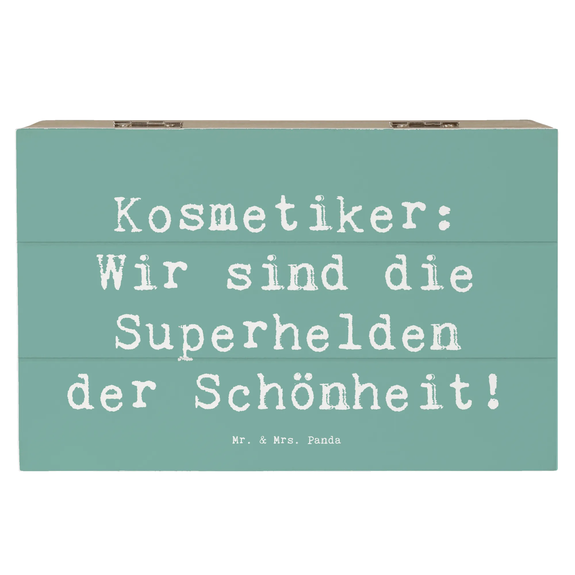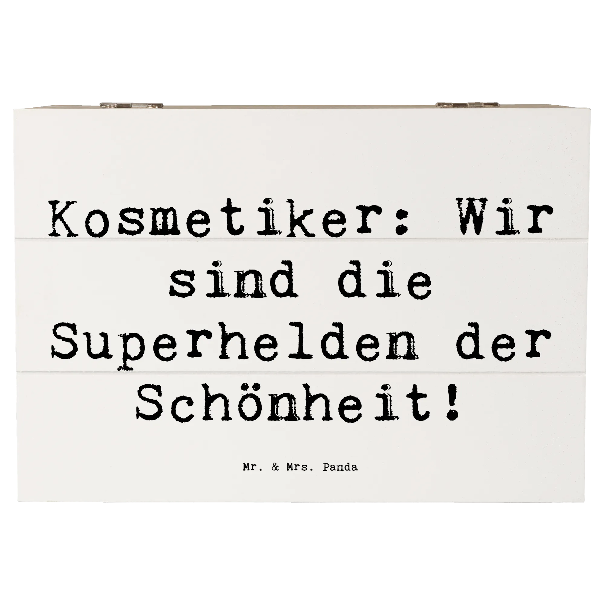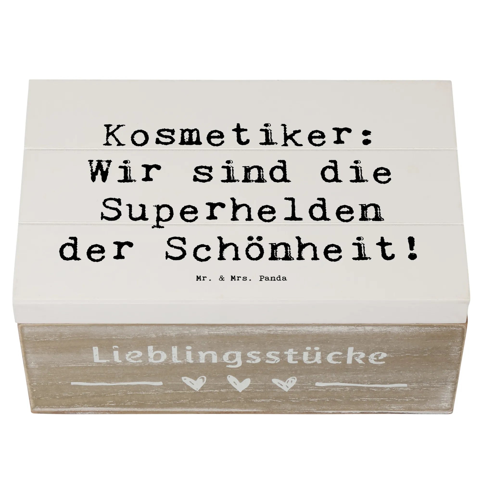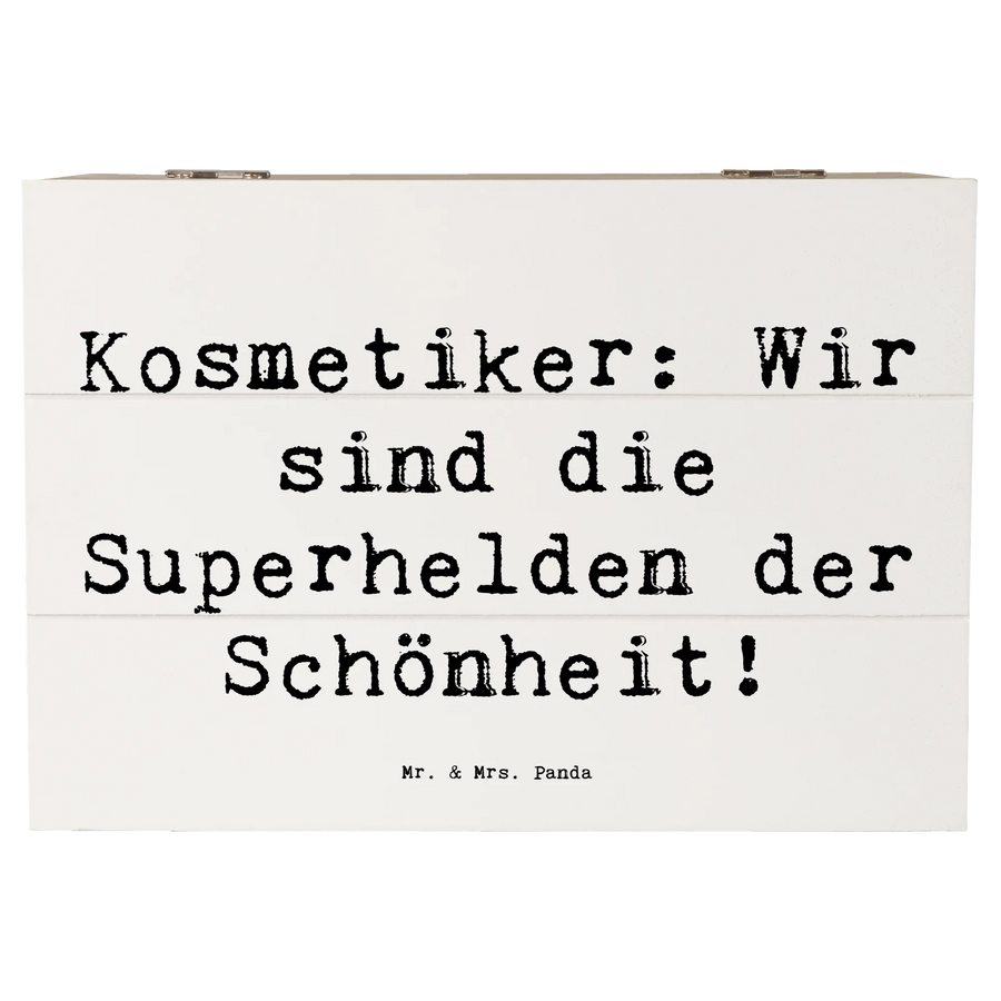 Die Holzkiste Kosmetiker von Mr. & Mrs. Panda ist das perfekte Geschenk für alle, die mit Schönheit und Pflege zu tun haben. Diese liebevoll gestaltete Kiste mit dem Spruch "Kosmetiker: Wir sind die Superhelden der Schönheit!" ist nicht nur ein Blickfang, sondern auch äußerst praktisch. Mit den Maßen von 19 x 12 x 10 cm bietet sie genügend Platz, um deine persönlichen Schätze aufzubewahren.