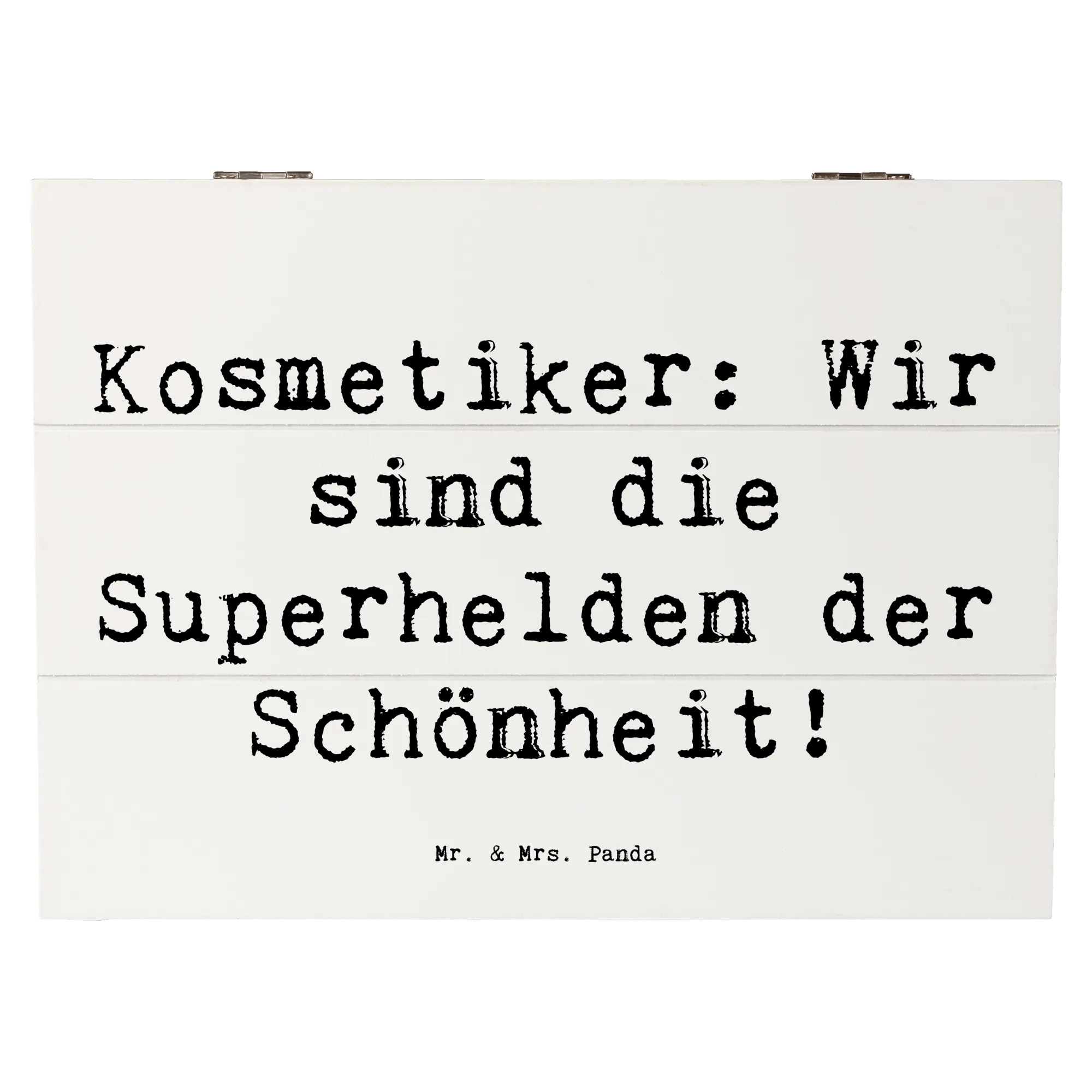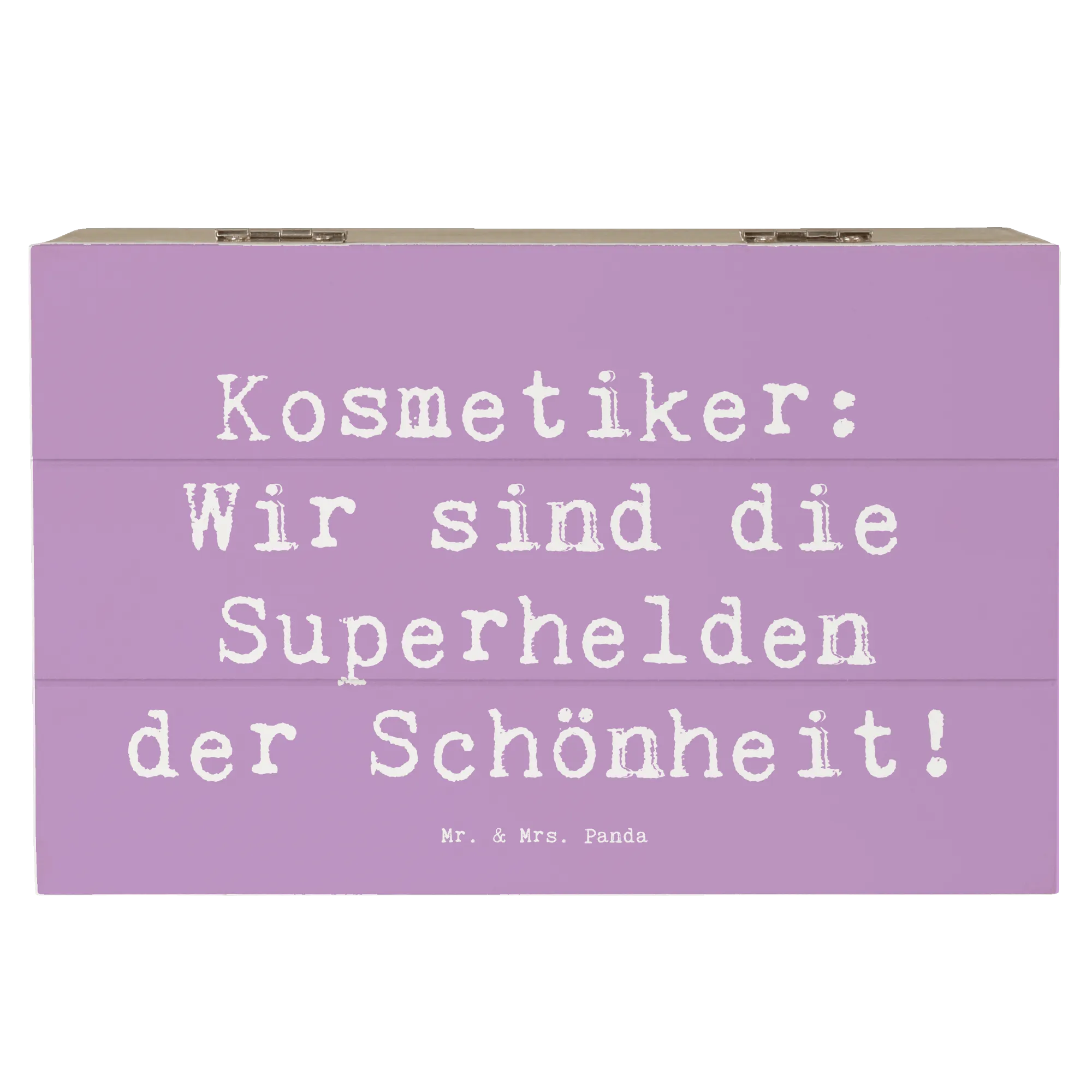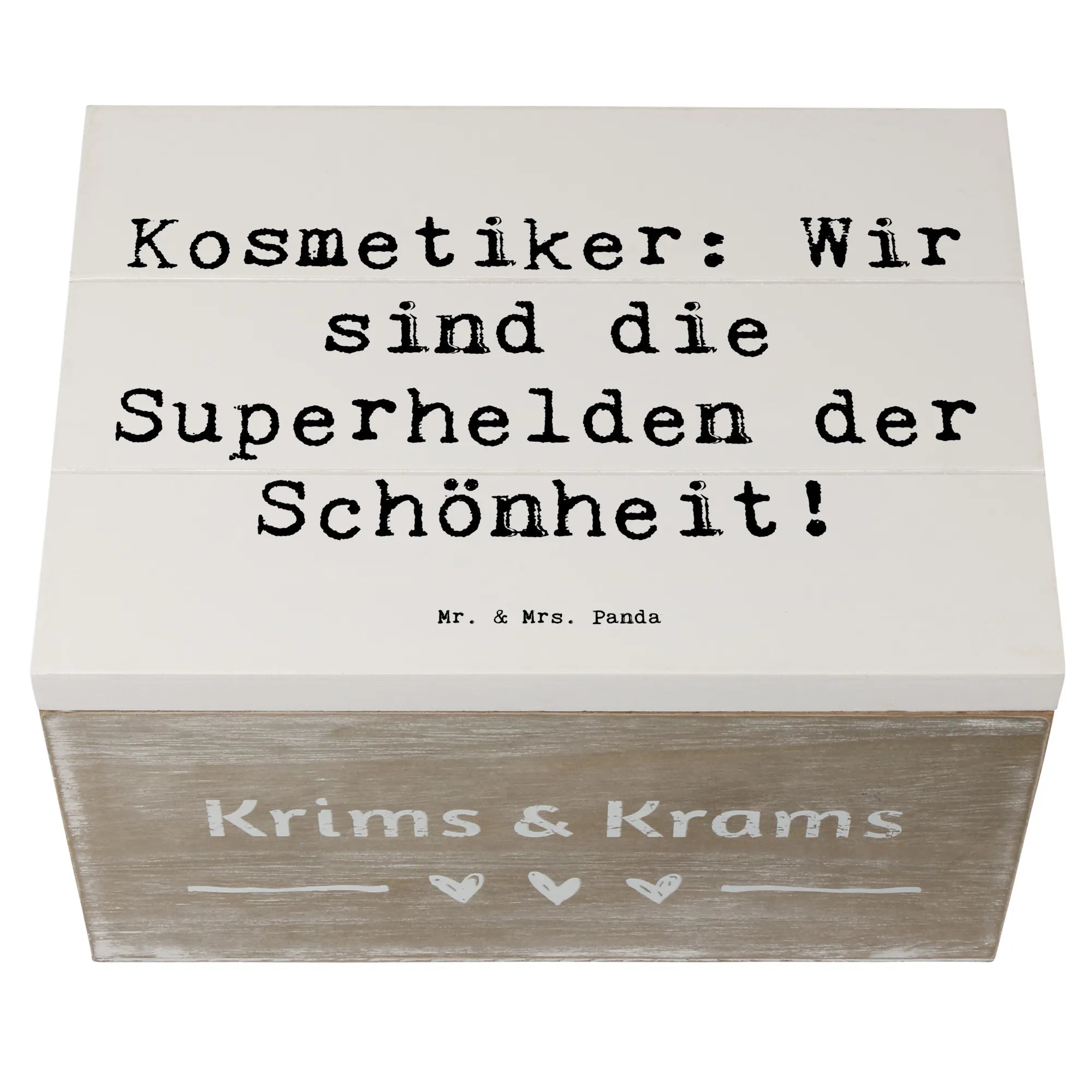 Die Holzkiste Kosmetiker von Mr. & Mrs. Panda ist das perfekte Geschenk für alle, die mit Schönheit und Pflege zu tun haben. Diese liebevoll gestaltete Kiste mit dem Spruch "Kosmetiker: Wir sind die Superhelden der Schönheit!" ist nicht nur ein Blickfang, sondern auch äußerst praktisch. Mit den Maßen von 19 x 12 x 10 cm bietet sie genügend Platz, um deine persönlichen Schätze aufzubewahren.