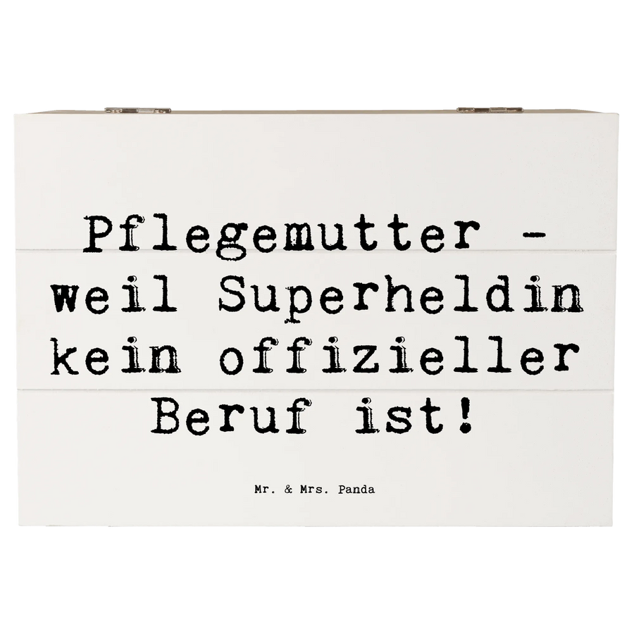 Jede Pflegemutter ist ein wahrer Held und verdient eine ganz besondere Anerkennung. Unsere wunderschöne Holzkiste von Mr. & Mrs. Panda ist perfekt geeignet, um den unermüdlichen Einsatz von Pflegemüttern zu ehren. Diese liebevoll gestaltete Kiste mit dem Spruch "Pflegemutter - weil Superheldin kein offizieller Beruf ist!" bringt das Herz zum Strahlen und bietet einen wundervollen Aufbewahrungsort für die kostbaren Erinnerungen, die im Laufe der Jahre entstehen – sei es ein persönliches Geschenk oder eine Erinnerungskiste für das Pflegekind.