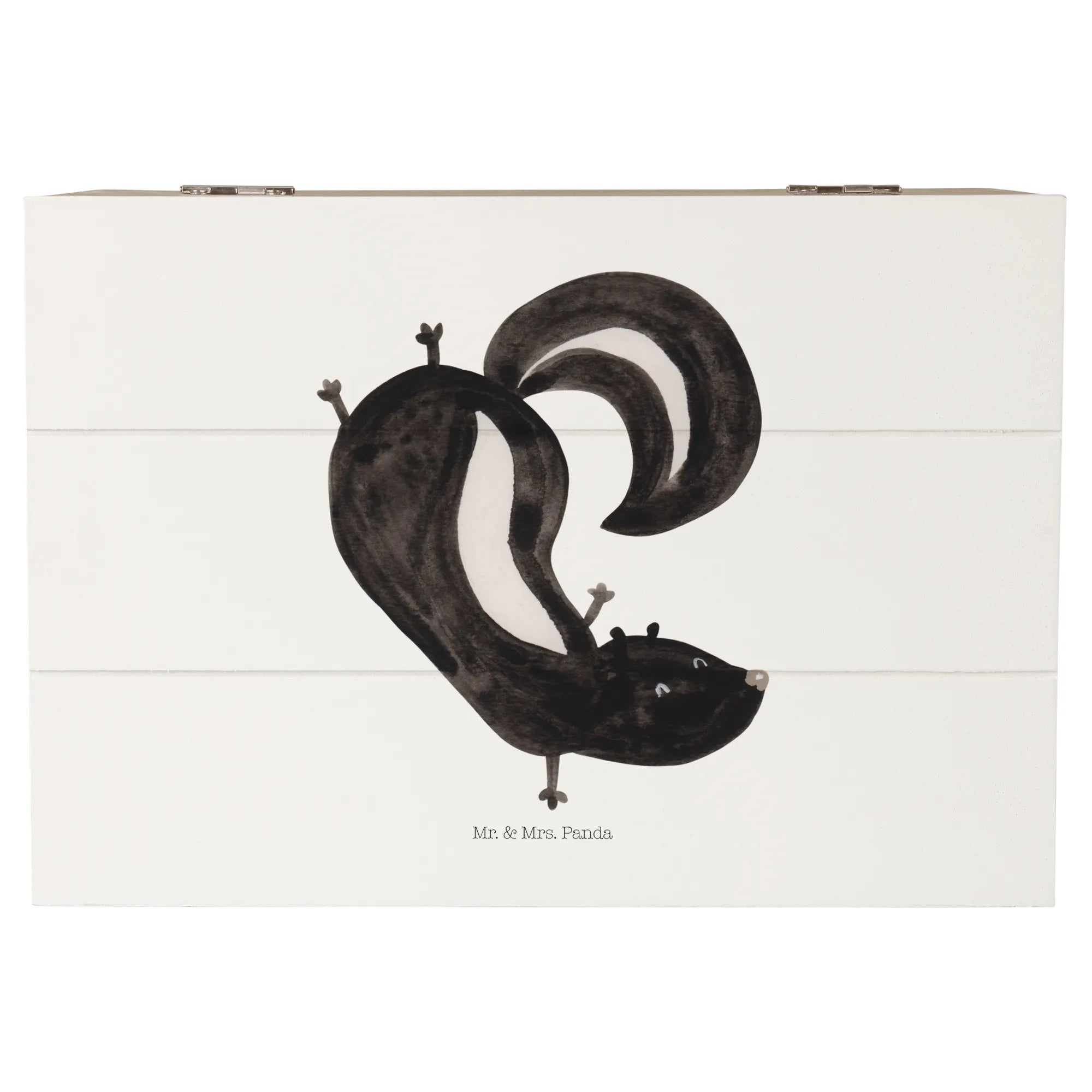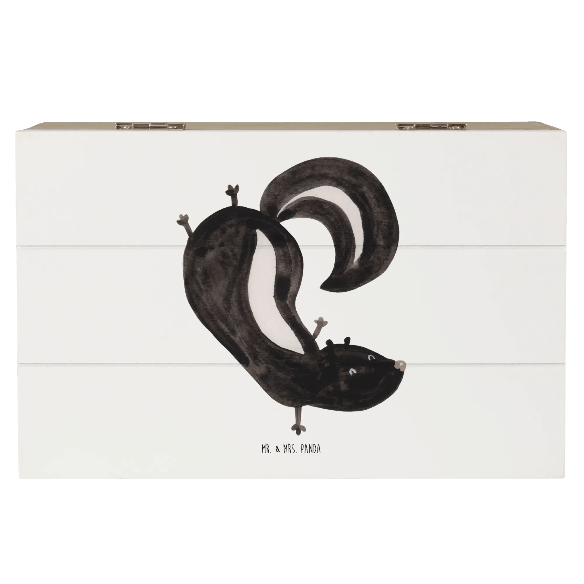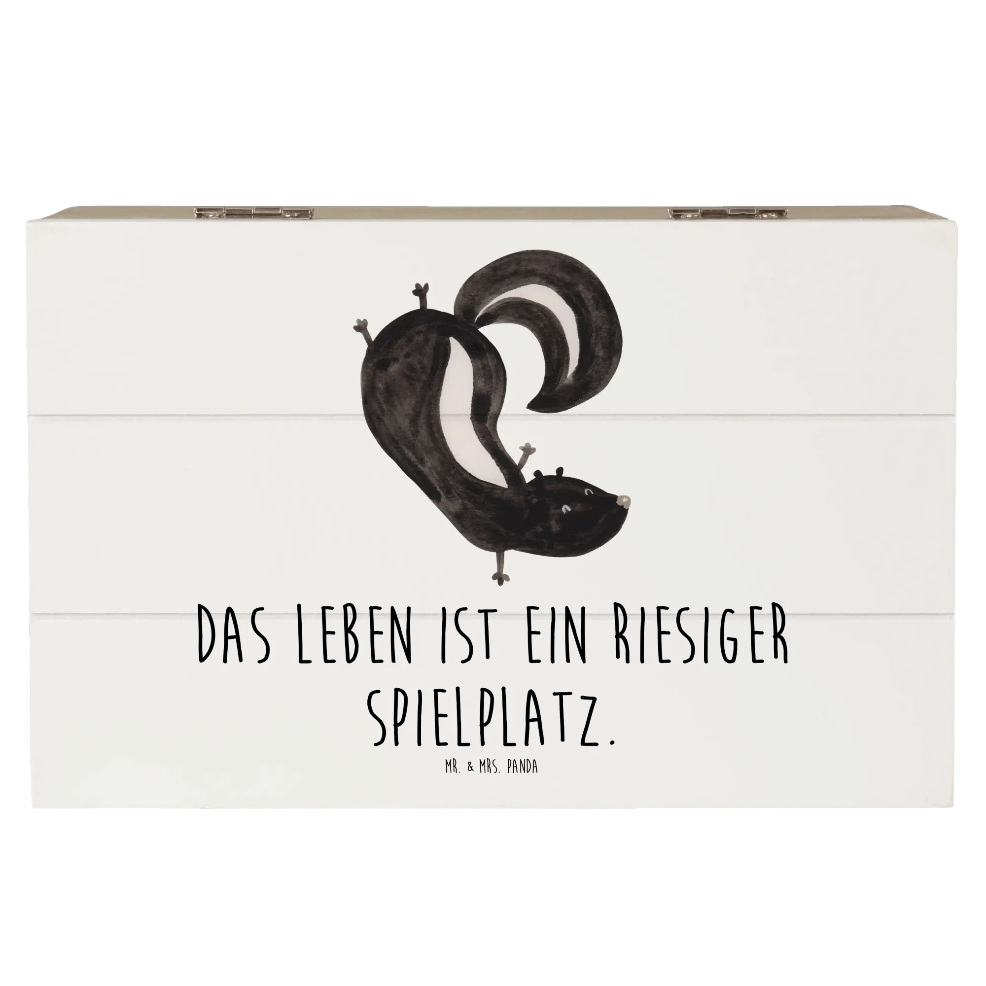 Skrzynia drewniana skunks stojka - 22 x 15 cm - z napisem - biały