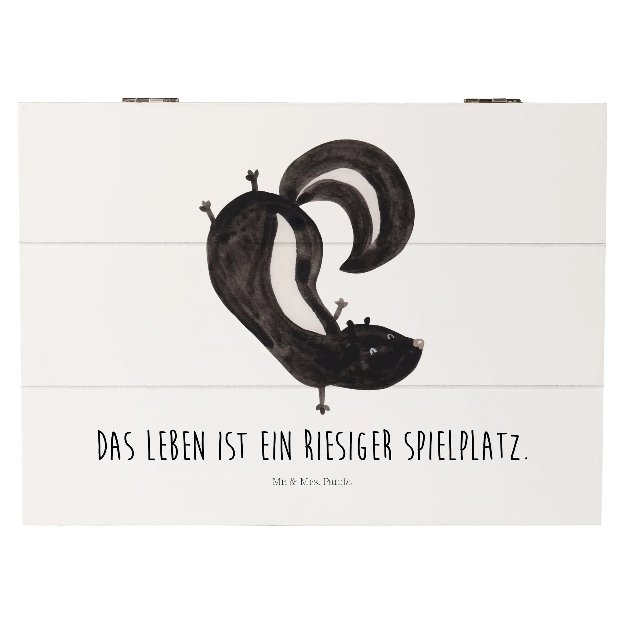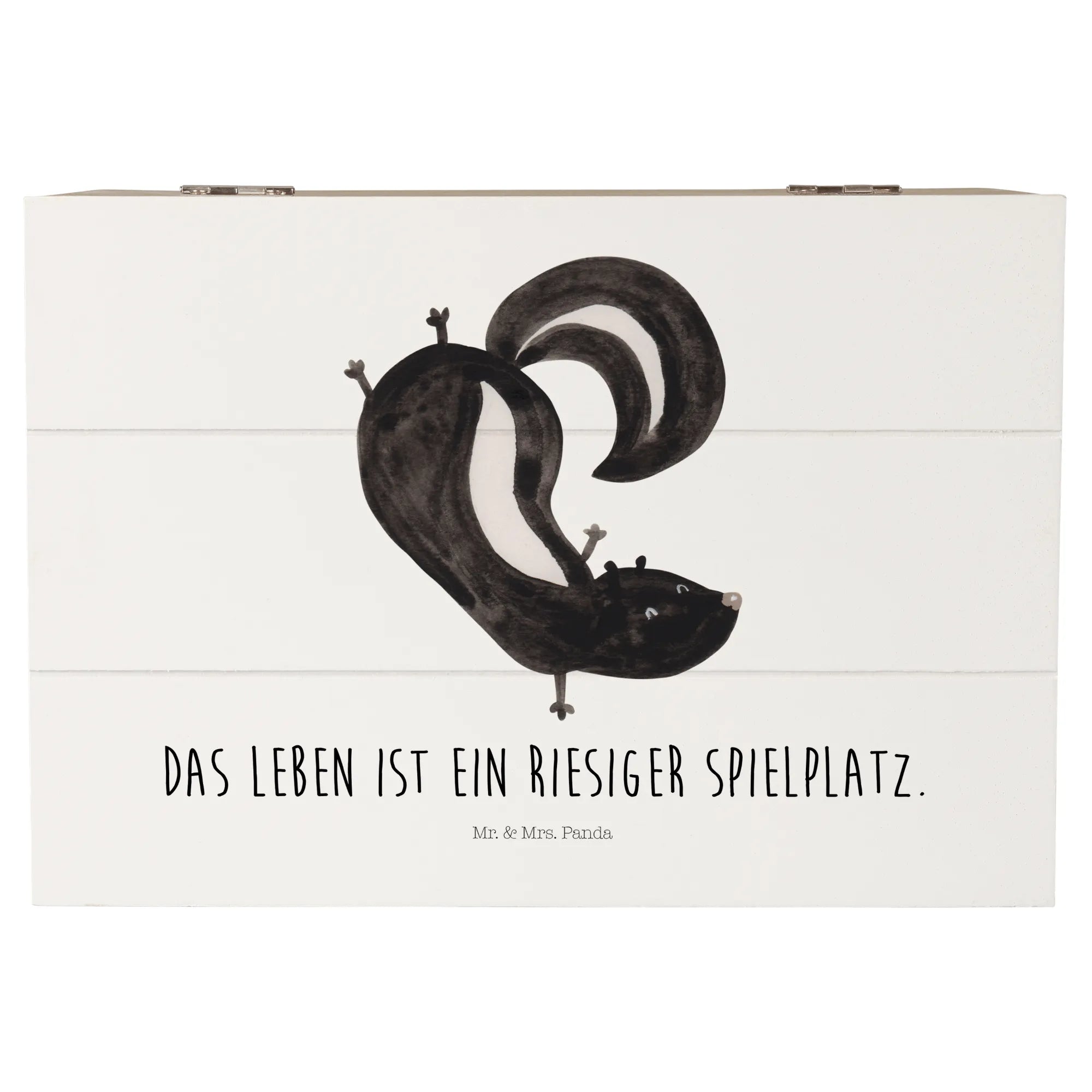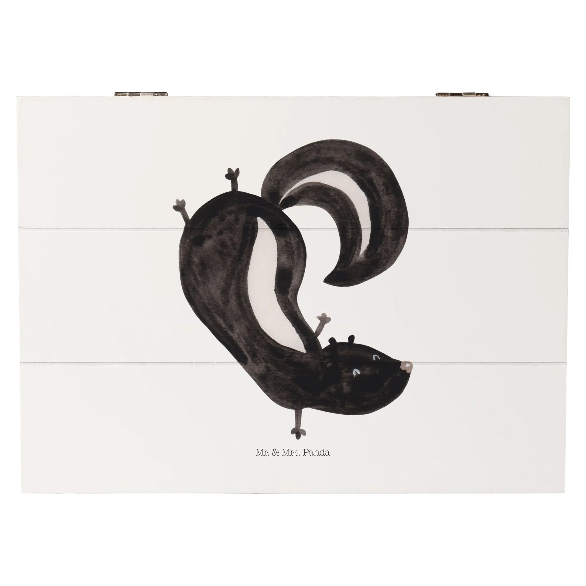 Skrzynia drewniana skunks stojka - 22 x 15 cm - z napisem - biały
