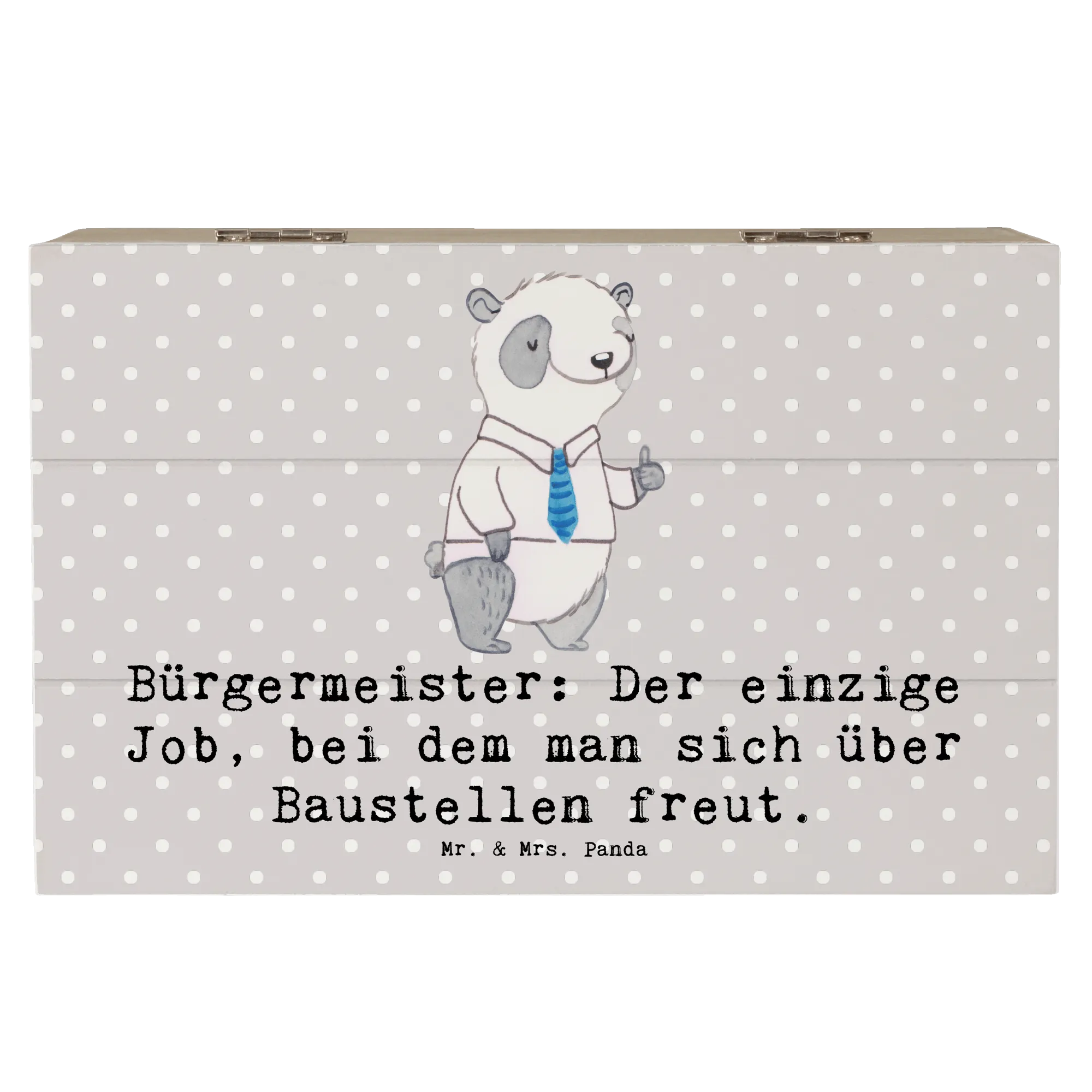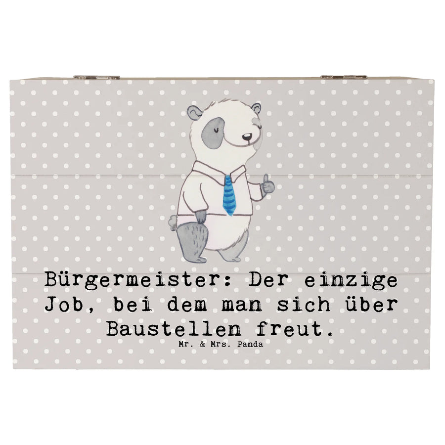 Entdecke die zauberhafte Holzkiste 'Bürgermeister' von Mr. & Mrs. Panda! Diese wunderschöne Kiste ist nicht nur ein praktischer Aufbewahrungsort für all deine Schätze, sondern auch ein ganz besonderes Geschenk für Menschen, die in der öffentlichen Verwaltung arbeiten oder einen Bezug zum Beruf des Bürgermeisters haben.
