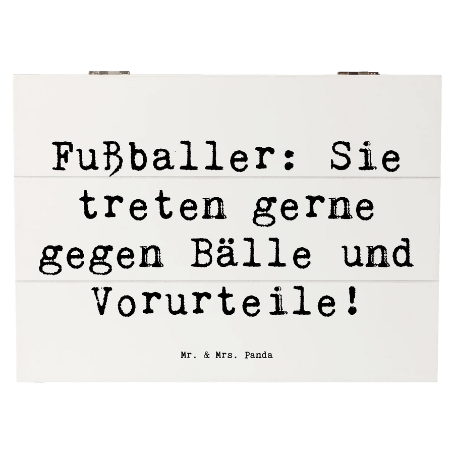 Die Holzkiste "Fußballer" von Mr. & Mrs. Panda ist das perfekte Geschenk für kleine und große Fußballfans! Mit dem Slogan "Fußballer: Sie treten gerne gegen Bälle und Vorurteile!" bringt diese wunderschöne Kiste Freude und Nostalgie in jedes Zuhause. Gefertigt aus robuster Holzfaser und ausgestattet mit Einschlagscharniere, ist sie nicht nur ein echter Blickfang, sondern auch ausgesprochen praktisch.