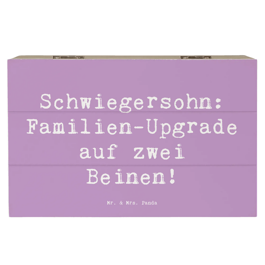 Die wunderschöne Holzkiste von Mr. & Mrs. Panda ist das perfekte Geschenk für deinen Schwiegersohn und ein echtes Highlight in jeder Familie! Mit dem liebevollen Motto „Schwiegersohn: Familien-Upgrade auf zwei Beinen!“ ist diese Kiste mehr als nur ein Aufbewahrungsort – sie symbolisiert die besondere Bindung, die Familienmitgliedschaften stärken.