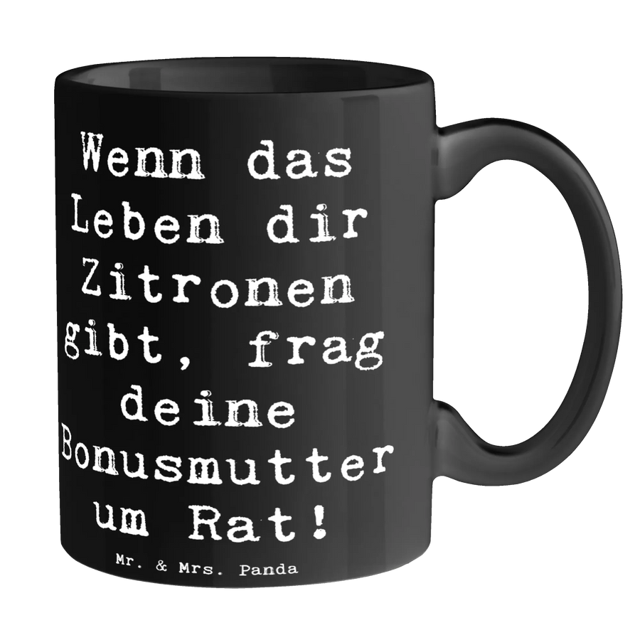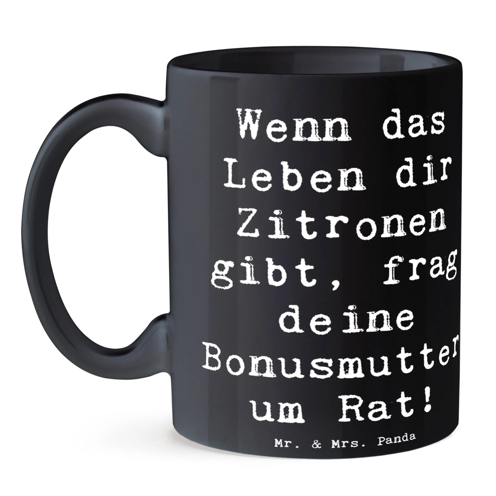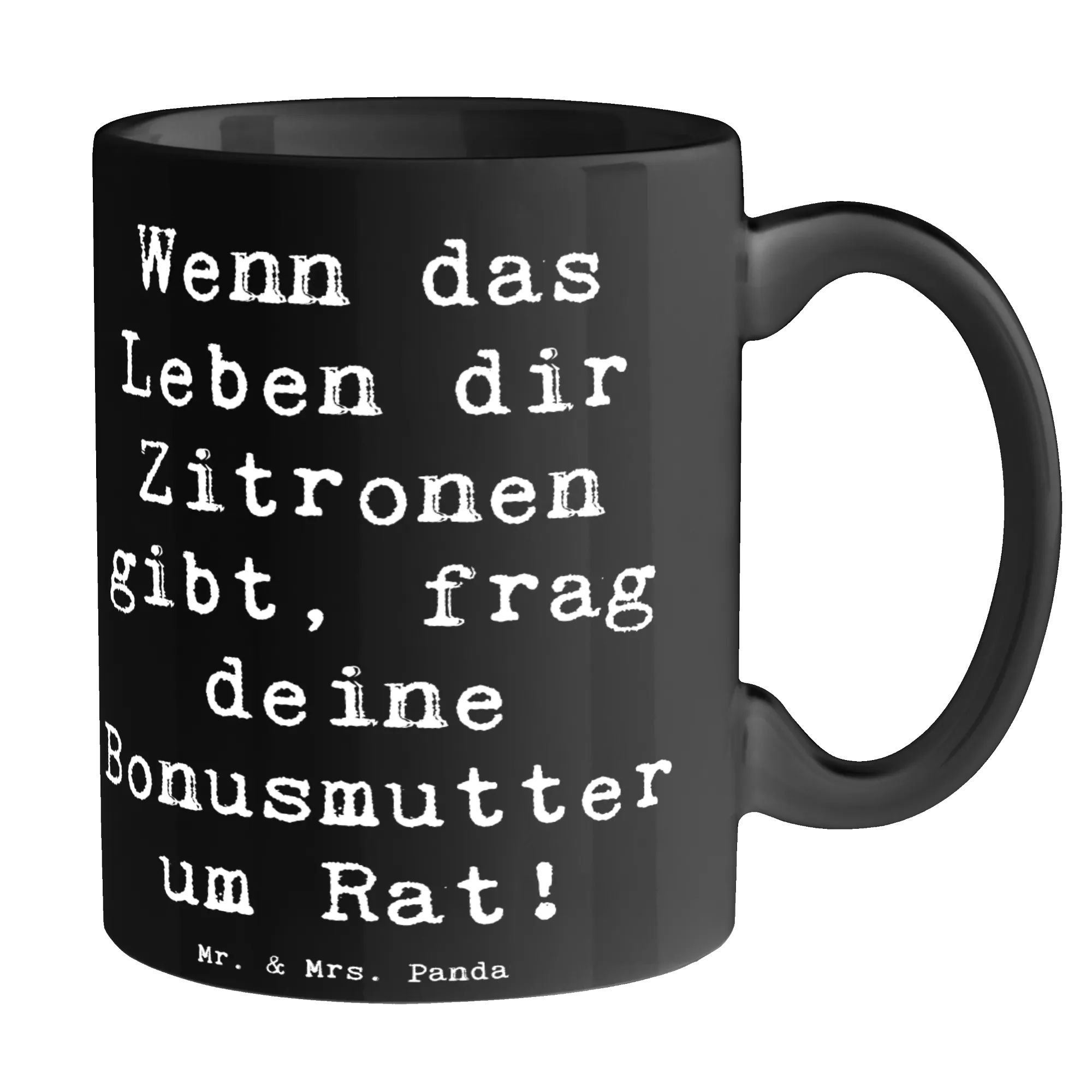 Tasse Spruch Rat bei Bonusmutter - Schwarz